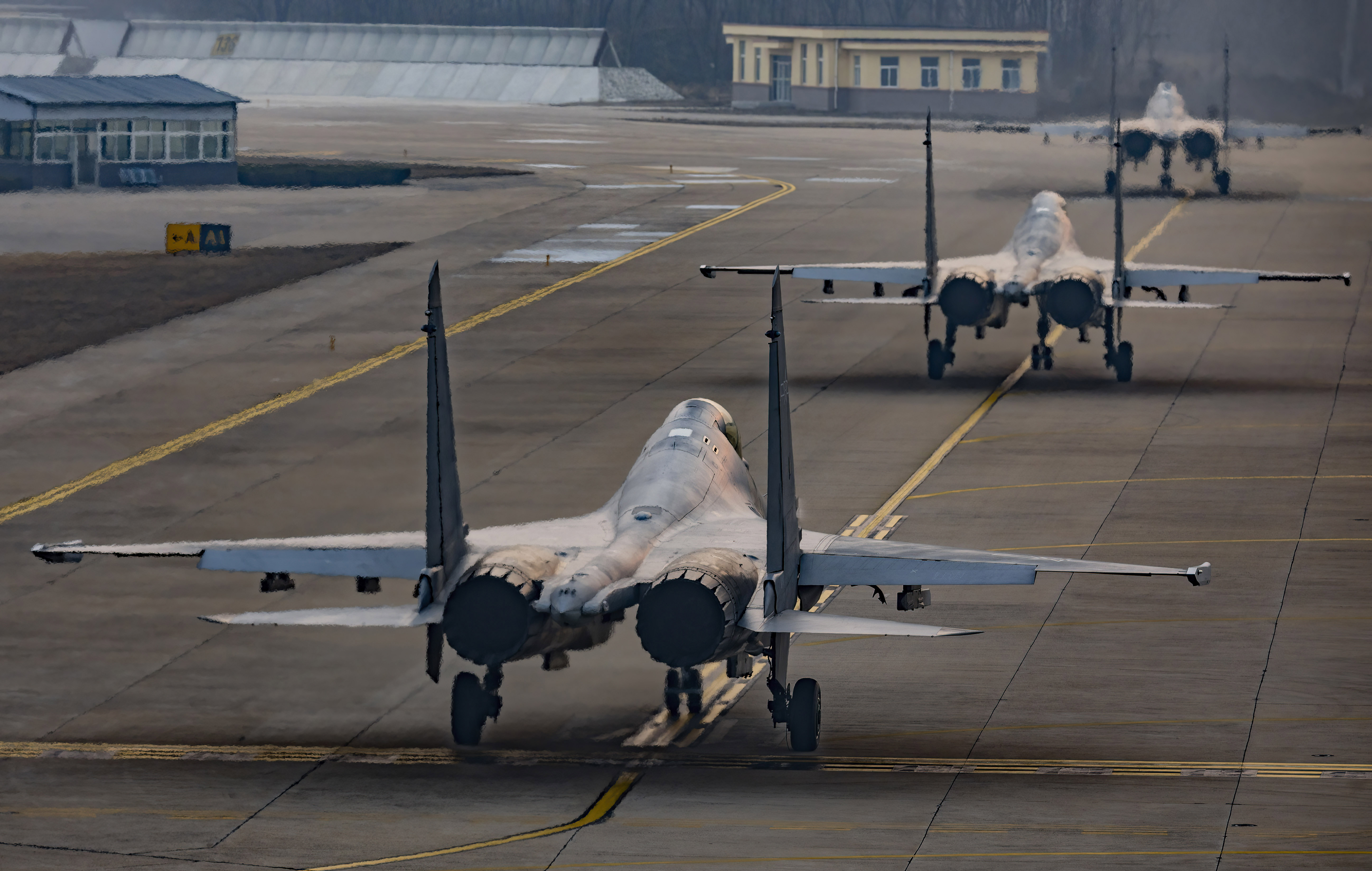 战机滑行进入跑道。