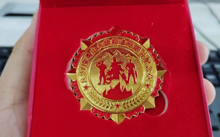 为致敬在2022年重庆山火中英勇奉献的志愿者们,共青团重庆市北碚区委近日制作了山火志愿服务纪念章和物资捐赠证书,发放给参与灭火救援的志愿者和社会各界捐赠物资的爱心人士们,以纪念大家守望相助、无私奉献、齐心战山火的精神。(央视新闻)