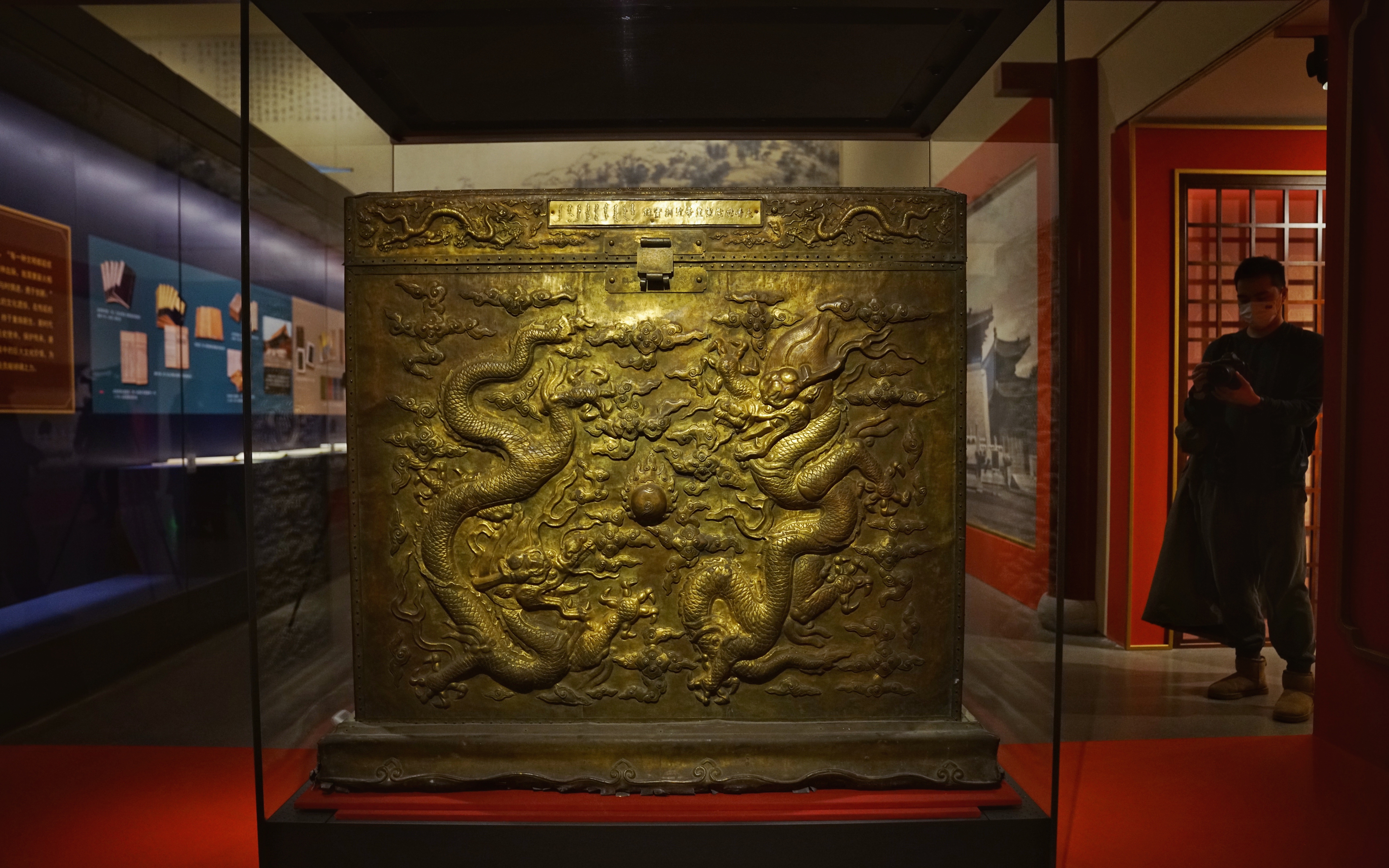 用以盛装皇帝圣训、实录等珍贵典籍的清代金匮。新京报记者 薛珺 摄