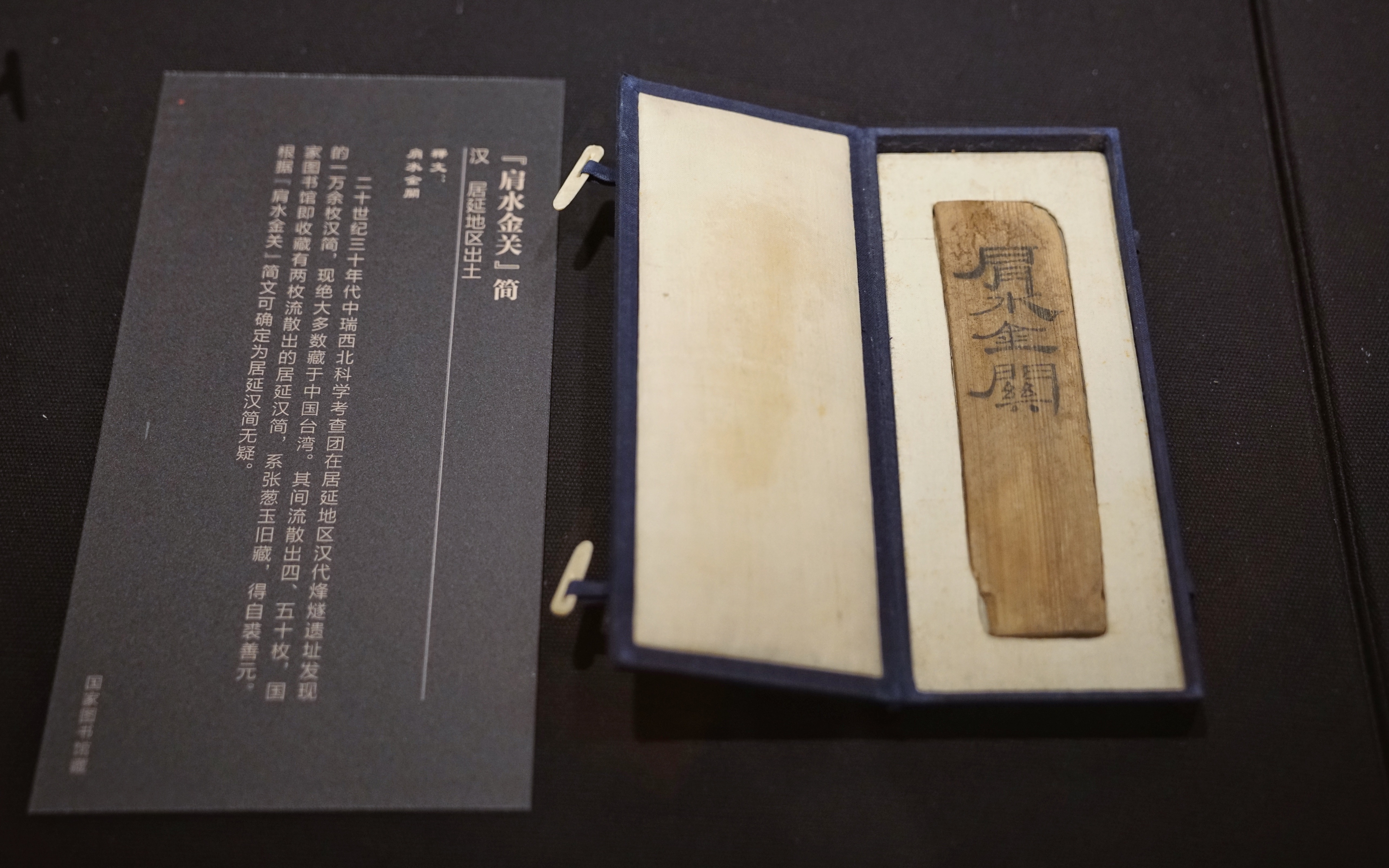 国家图书馆藏居延汉简《“肩水金关”简》。新京报记者 薛珺 摄