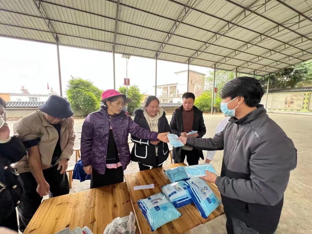 小分队下乡分发物资包。元阳县融媒体中心供图