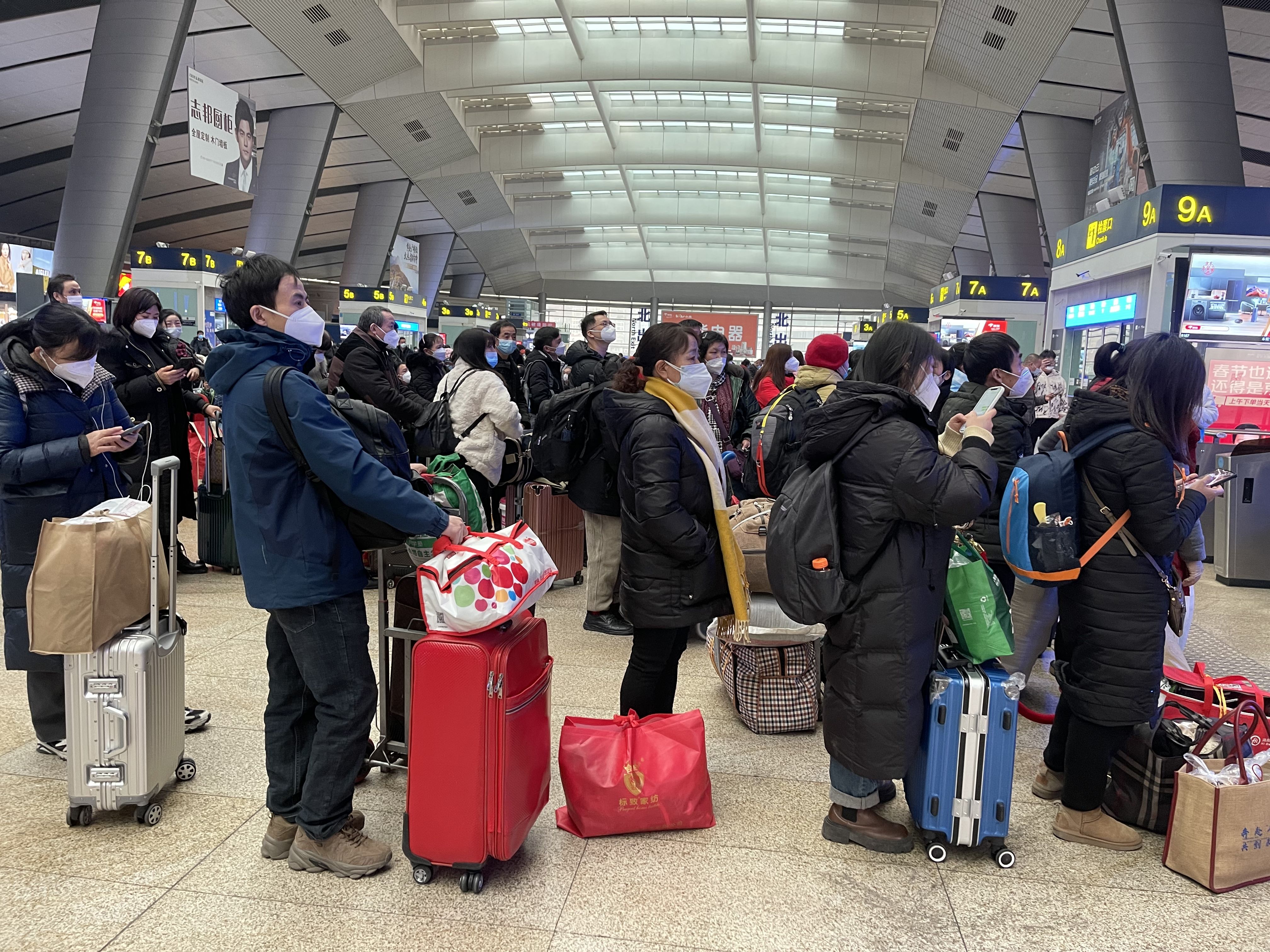 北京,火车南站内,许多旅客拖着沉甸甸的行李箱。 图/IC photo