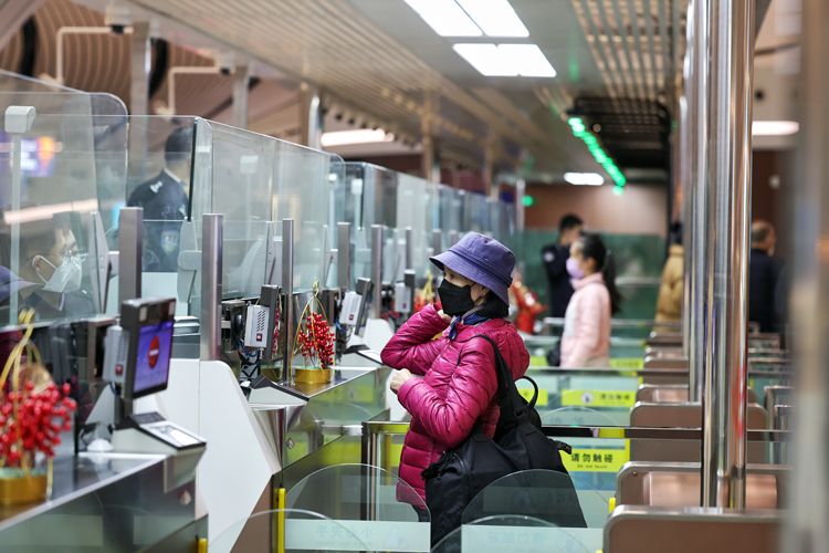 1月17日,大兴机场,旅客通过出入境边检柜台。新京报记者 陶冉 吴婷婷 摄影报道