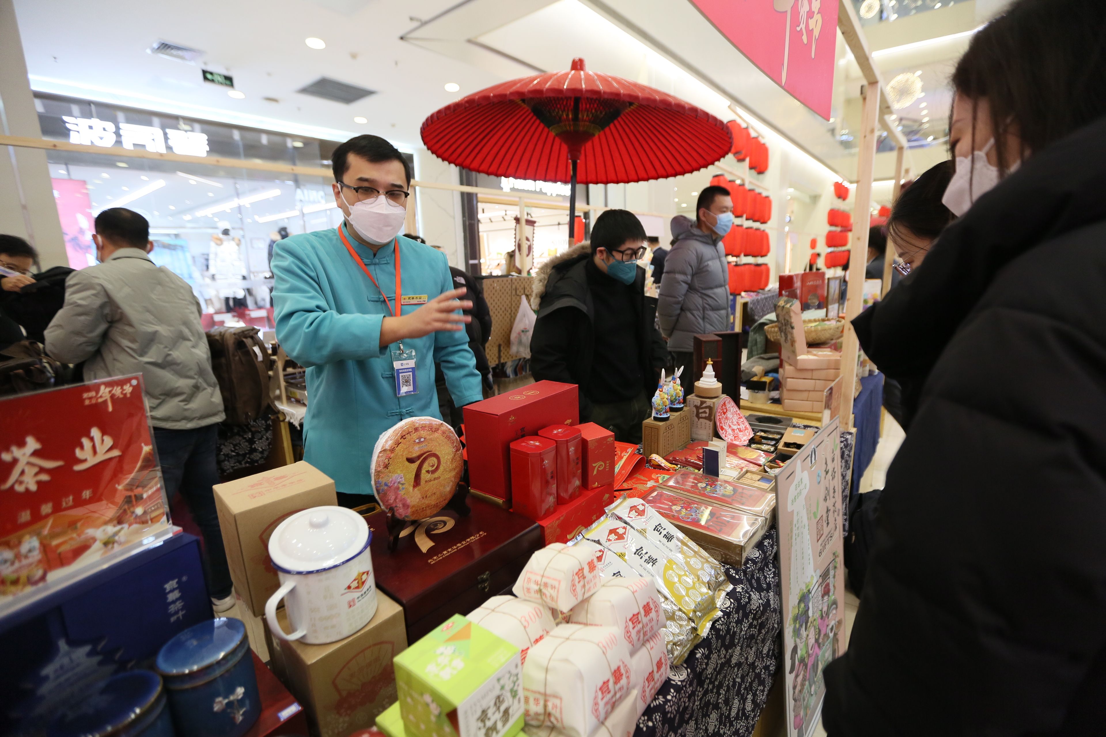 北京望京一商圈内的老字号摊位前,工作人员正在向顾客介绍自家产品。 新京报记者 王子诚 摄