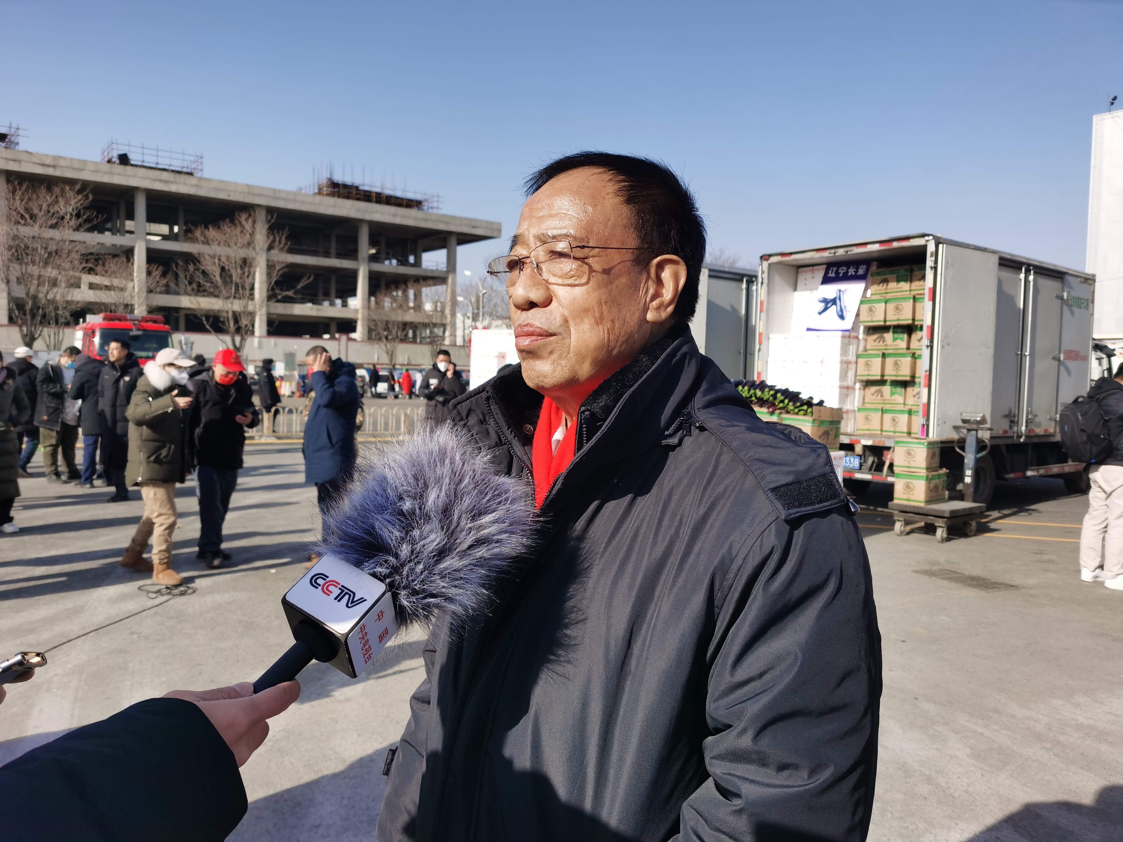 北京新发地农产品批发市场董事长张玉玺接受媒体采访。新发地批发市场供图