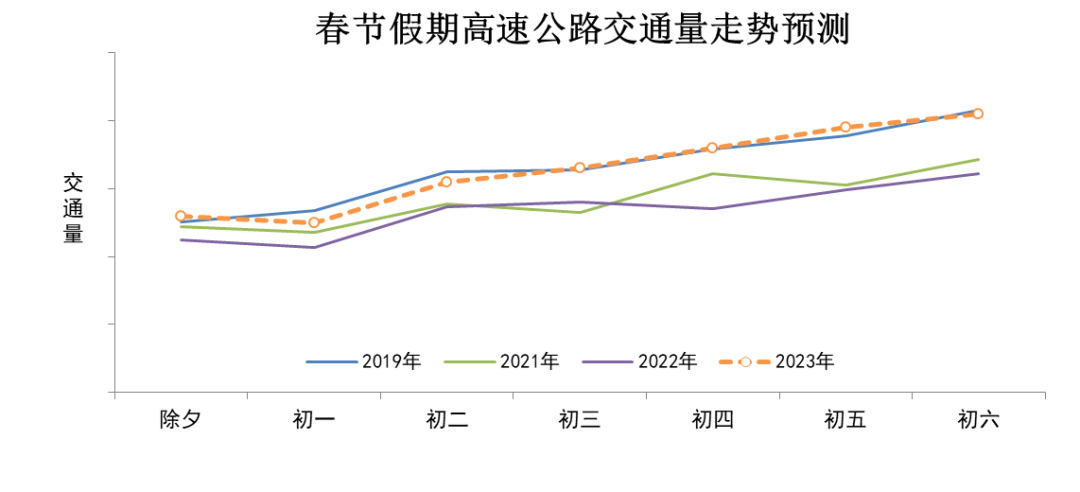 春节假期高速公路交通呈“前低后高”的运行走势,整体交通压力不大,交通量较去年同期增长两成左右,基本恢复到疫情前2019年同期水平。