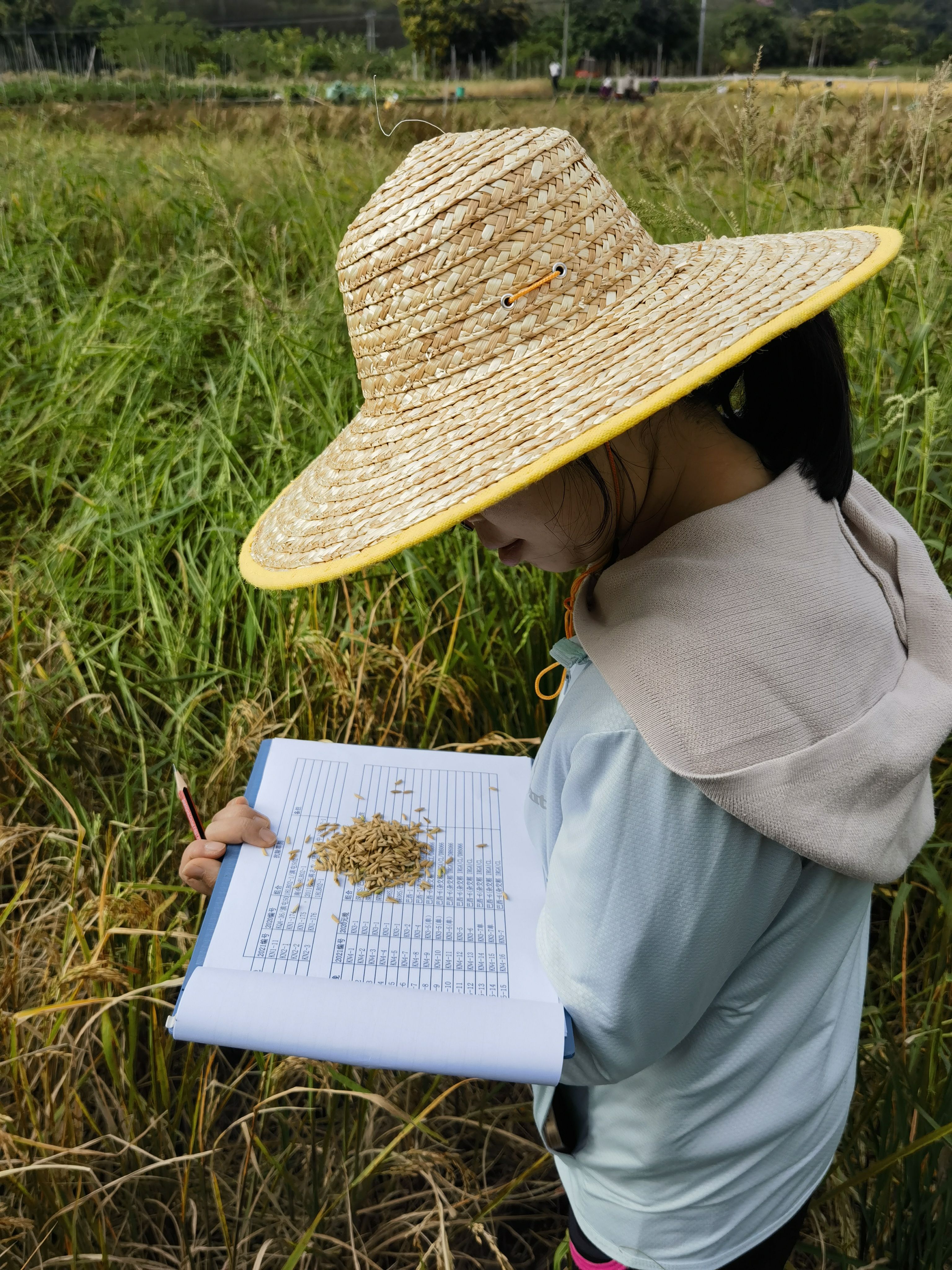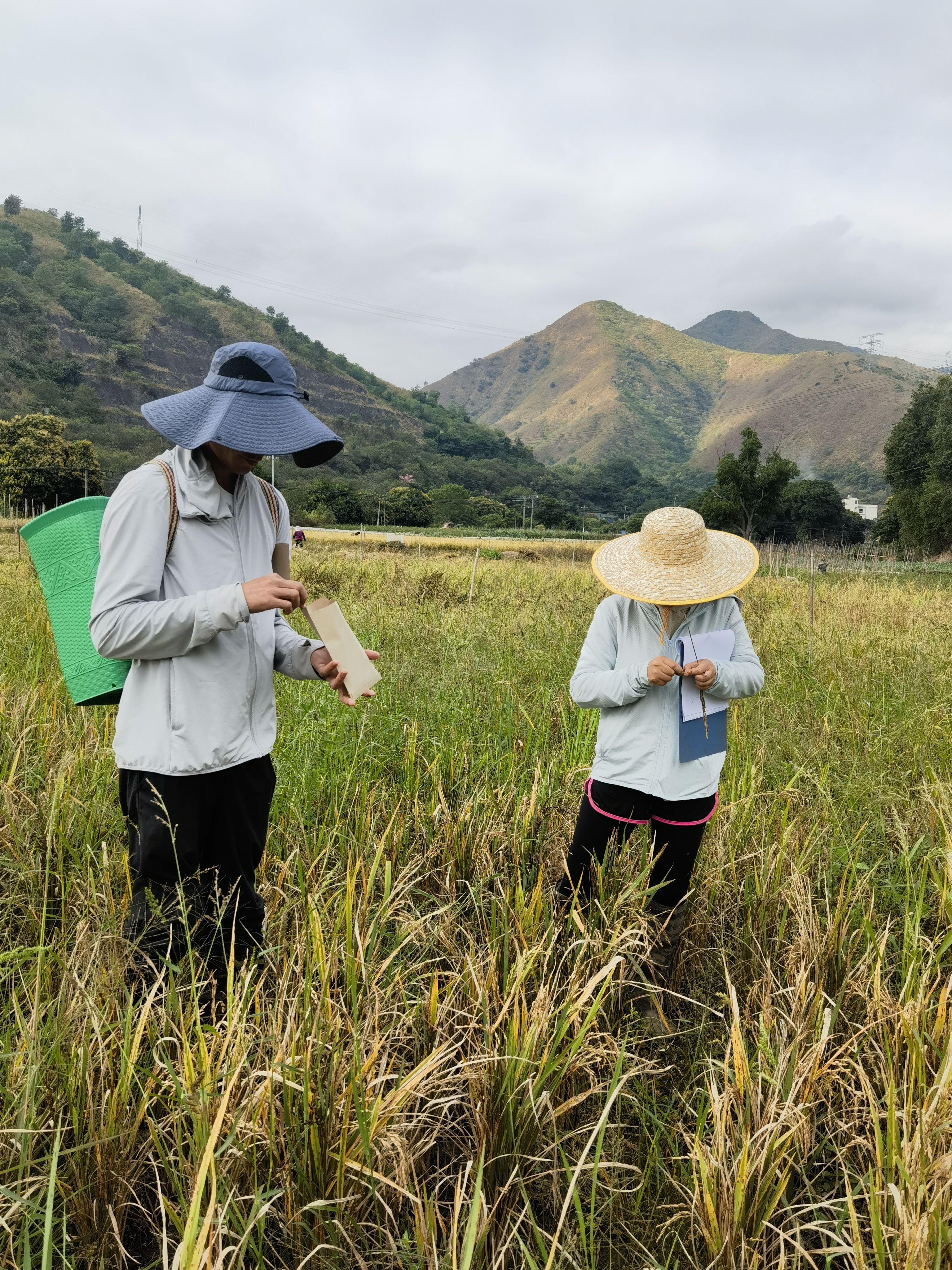 云南省元阳县南沙镇排沙村的稻田里,一茬又一茬晚稻稻谷被科研人员收进采集标本的信封里。元阳县融媒体中心供图