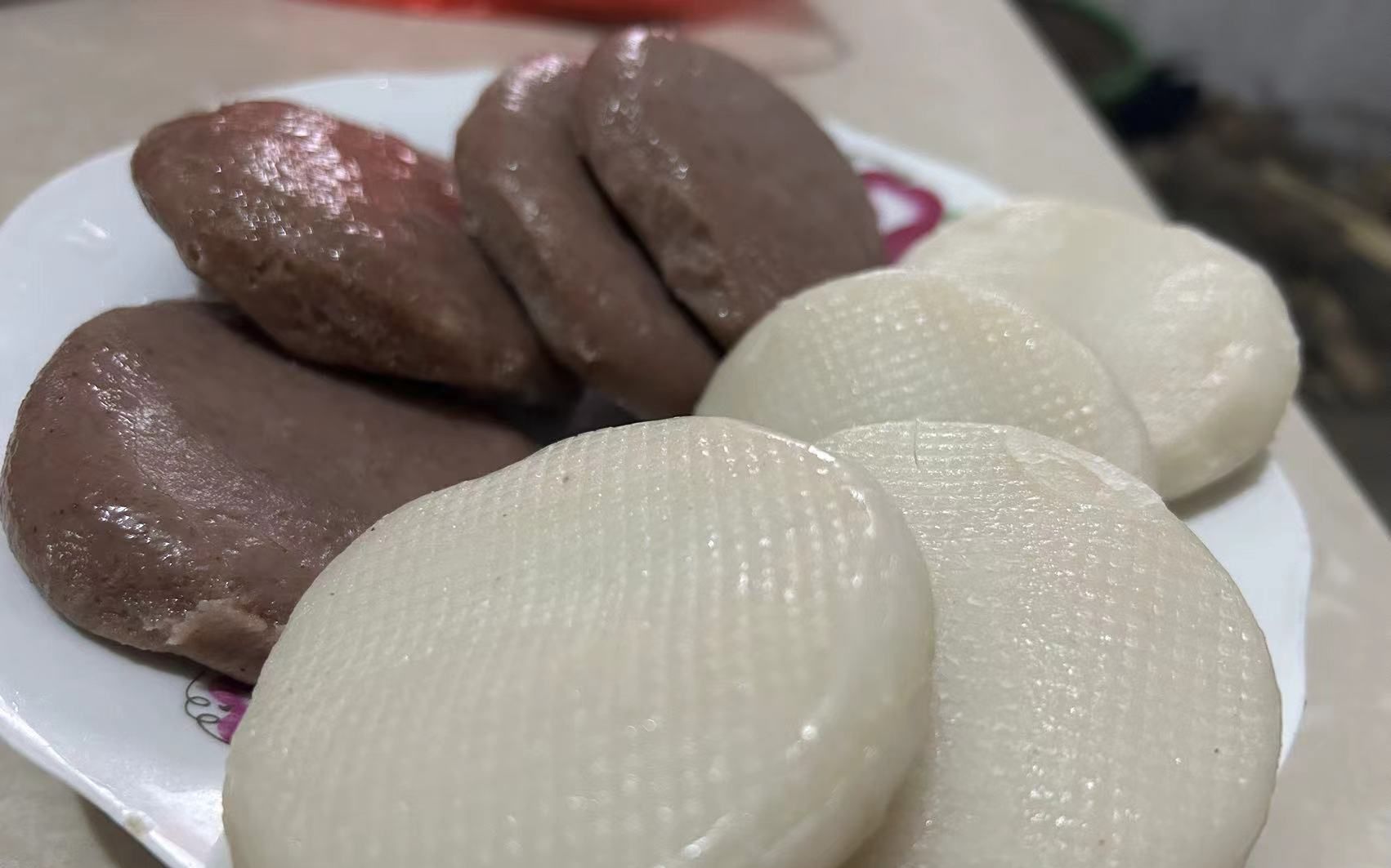 还有用大米和荞麦做成的豆丝。与制作年粑的方式差不多,经过泡大米、泡荞麦、磨米浆后,豆丝才能成形。