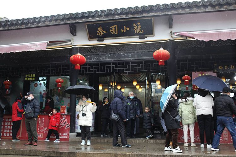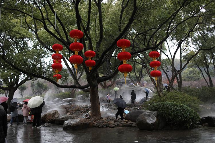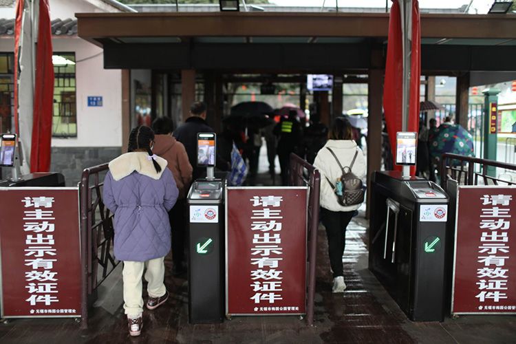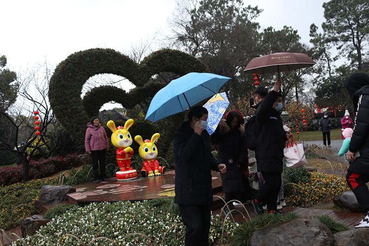 春节期间,无锡太湖鼋头渚、锡惠公园、梅园公园、蠡园公园等49个景区免费开放。无锡市政府同时策划推出“乐享新春”太湖购物节、“乐游无锡”文旅系列活动,让游客全方位体验锡式山水文脉、市井烟火和温情生活。图为:1月23日(正月初二),游客雨中游览梅园。