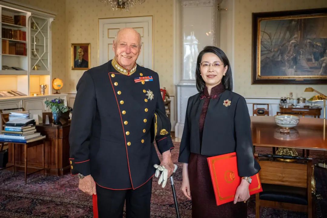 侯大使转达了习近平主席对哈拉尔五世国王的亲切问候,并表示,国王陛下是中国人民的老朋友,长期关心和支持中挪关系发展。在两国元首的共同引领下,中挪政治互信更加巩固,各领域合作成果丰硕,两国友谊不断深化。中挪拥有广泛共同利益,在诸多领域优势互补,发展务实友好的双边关系符合两国人民的根本利益和共同期待。作为新任中国驻挪大使,我将积极落实两国元首共识,推动中挪关系在新时代继续健康稳定发展。