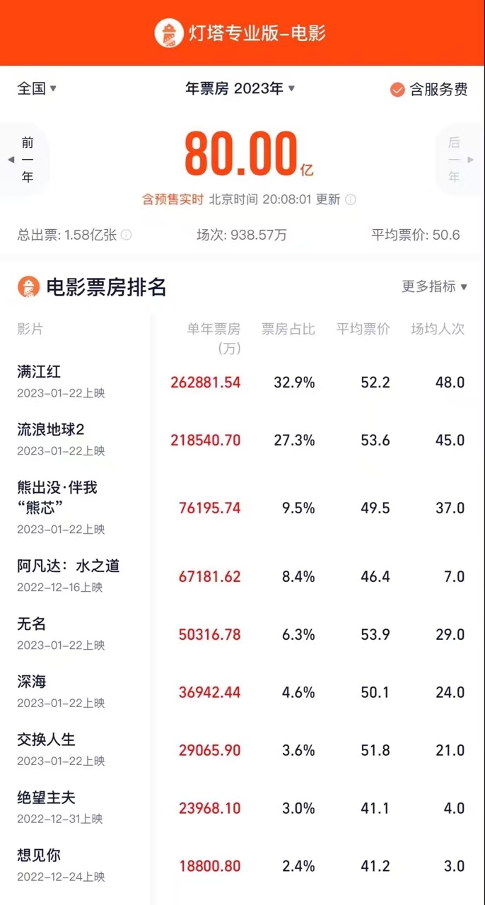 2023年度总票房破80亿,刷新年票房“最快”纪录