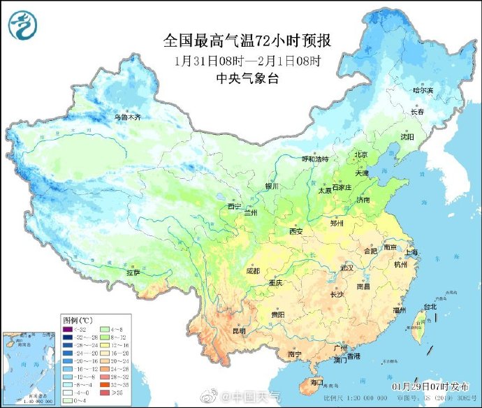 据@中国天气微博消息,今天(1月29日)开始,全国大部地区气温将走入升温通道,到月底江南、江汉等地部分地区最高气温可达到20℃左右,温暖程度堪比春分,不过昼夜温差大。同时,大部地区天气晴朗,仅西藏西部将有较强降雪出现,局地有暴雪。2月初又将有两股冷空气到来,中东部各地气温又将陆续转为偏低。