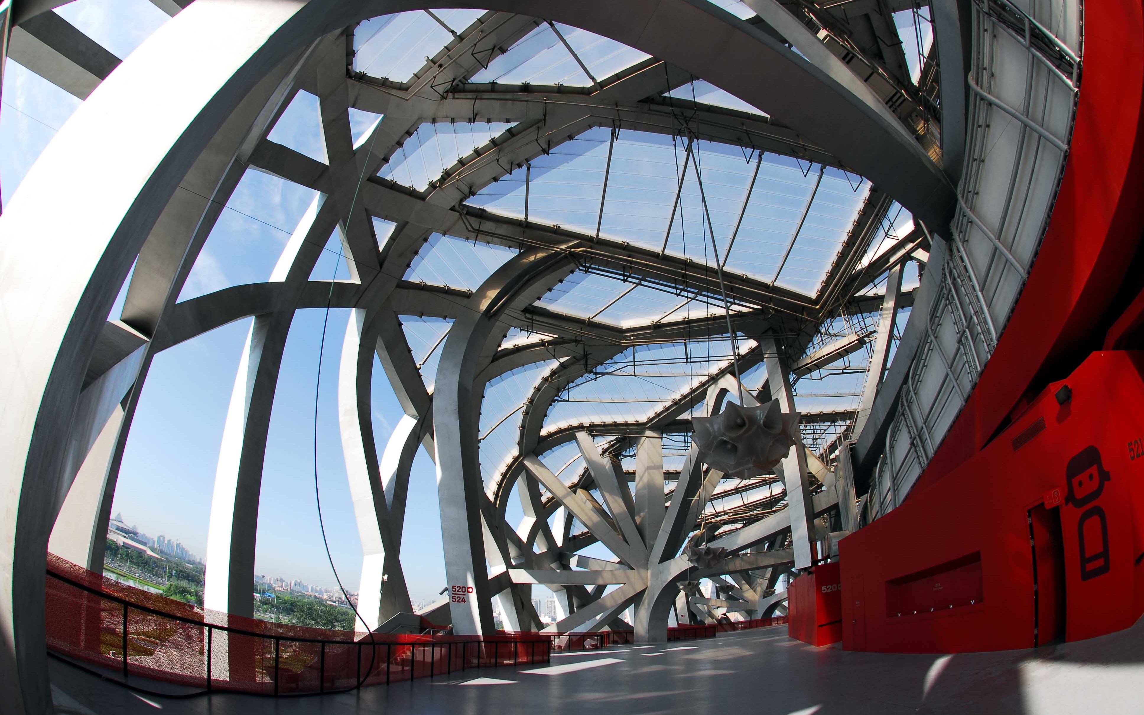 亮点3:钢铁森林。钢铁森林区域位于鸟巢五层,是鸟巢钢结构最佳拍照点位。鸟巢是世界上跨度最大的钢结构建筑,纵横交错的钢铁枝蔓是设计中最亮眼的部分之一,这些看似轻盈飘逸的枝蔓其实是钢筋铁骨的支撑。鸟巢外形结构主要由巨大的门式钢架组层,共有24根桁架柱,顶面呈马鞍形。