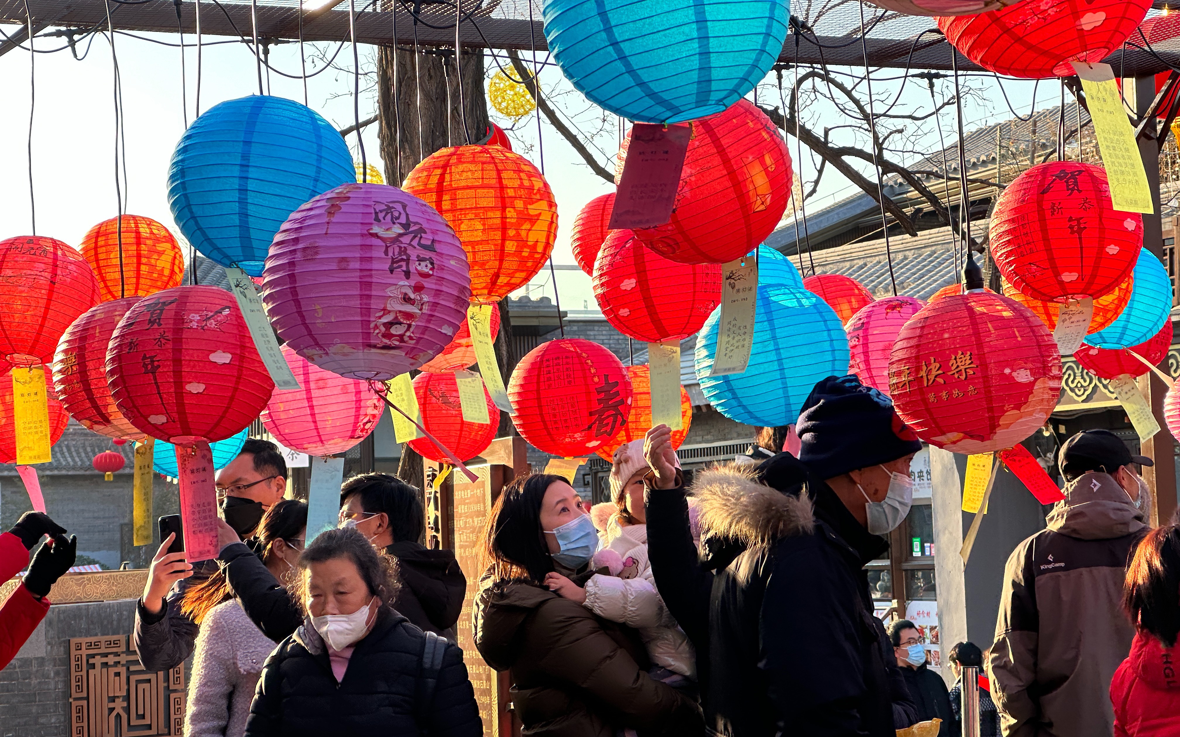 龙王庙广场,游客正在猜灯谜。新京报记者 王巍 摄