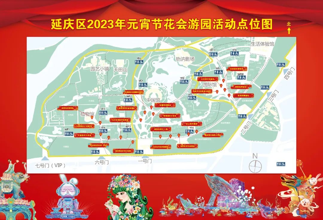 观看2023年北京世园公园元宵节花会游园活动的游客朋友们请您从1号门、2号门入园,前往各展演区。