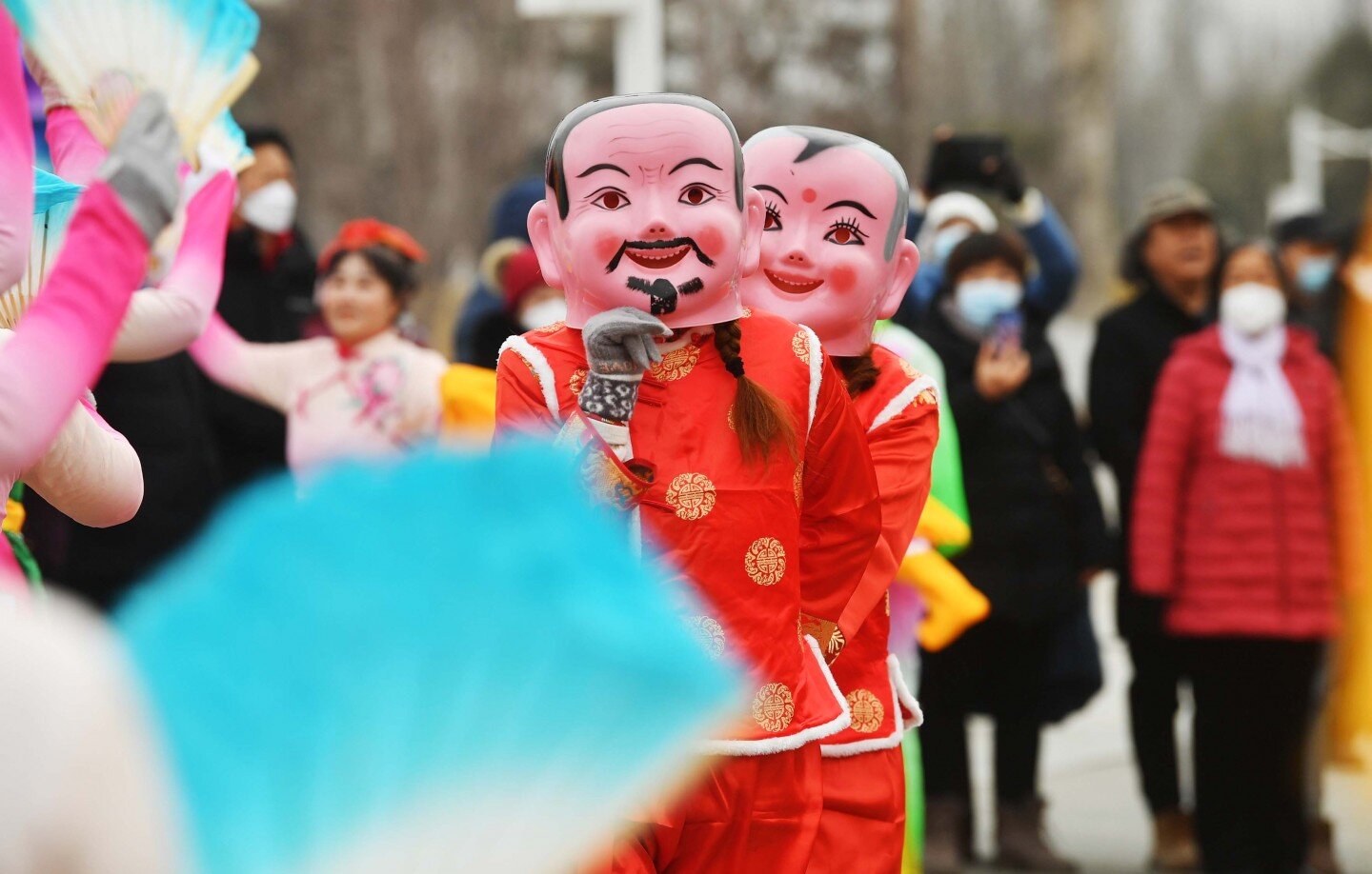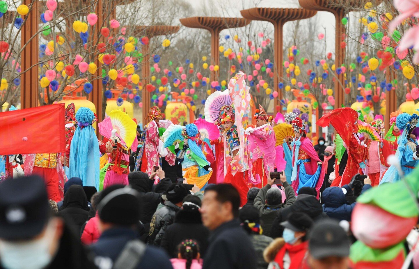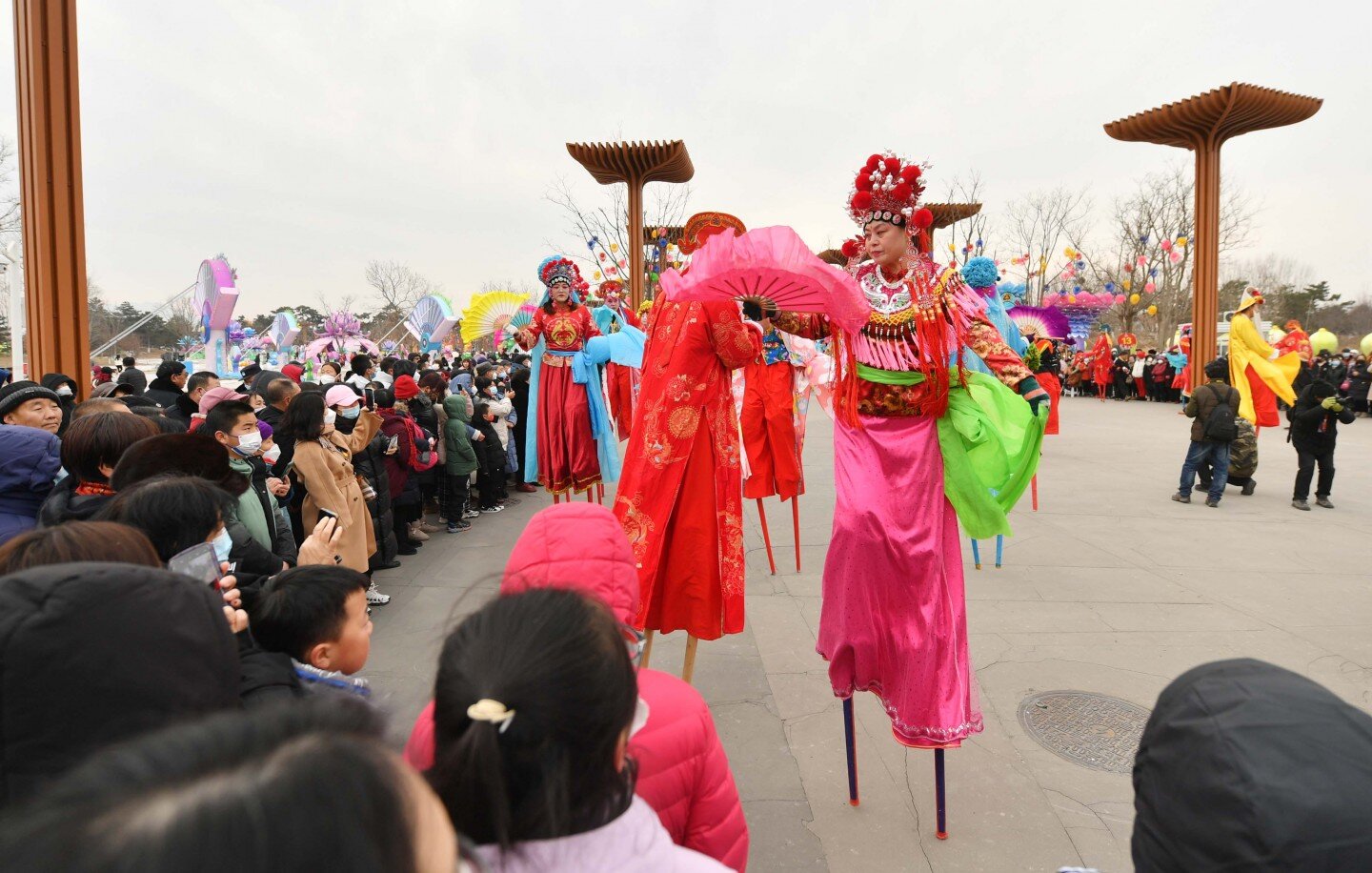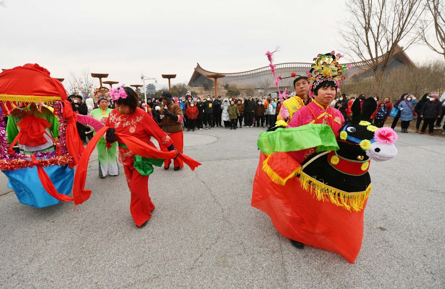 延庆世园公园内,上演传统花会表演。新京报记者 陶冉 摄