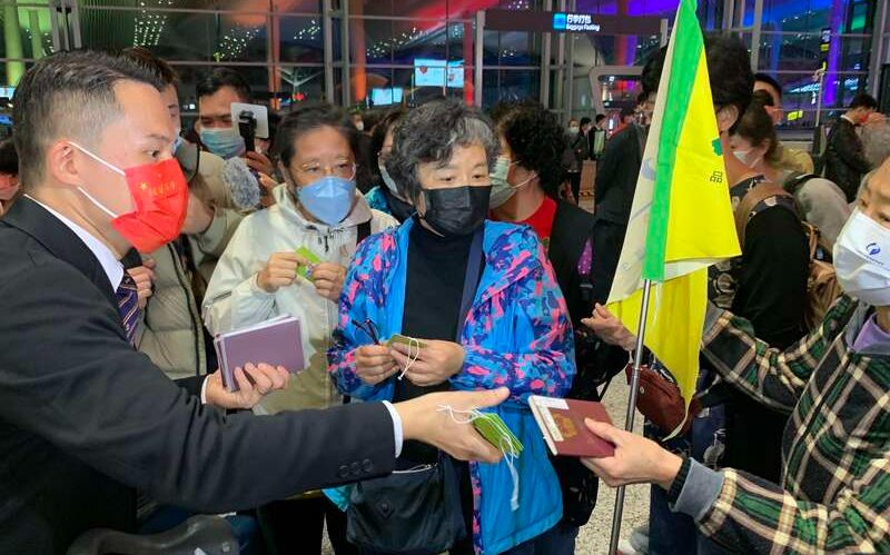 2月5日晚,近50名游客来到广州白云国际机场T2航站,他们将搭乘阿联酋航空2月6日凌晨0时15分起飞的EK363航班,分别参加“阿联酋迪拜、阿布扎比6天”和“埃及10天”旅行团。时隔3年后,全国首个出境旅游团队从广州出发,标志着我国出境团队旅游业务大幕重启。(中国青年报微博)
