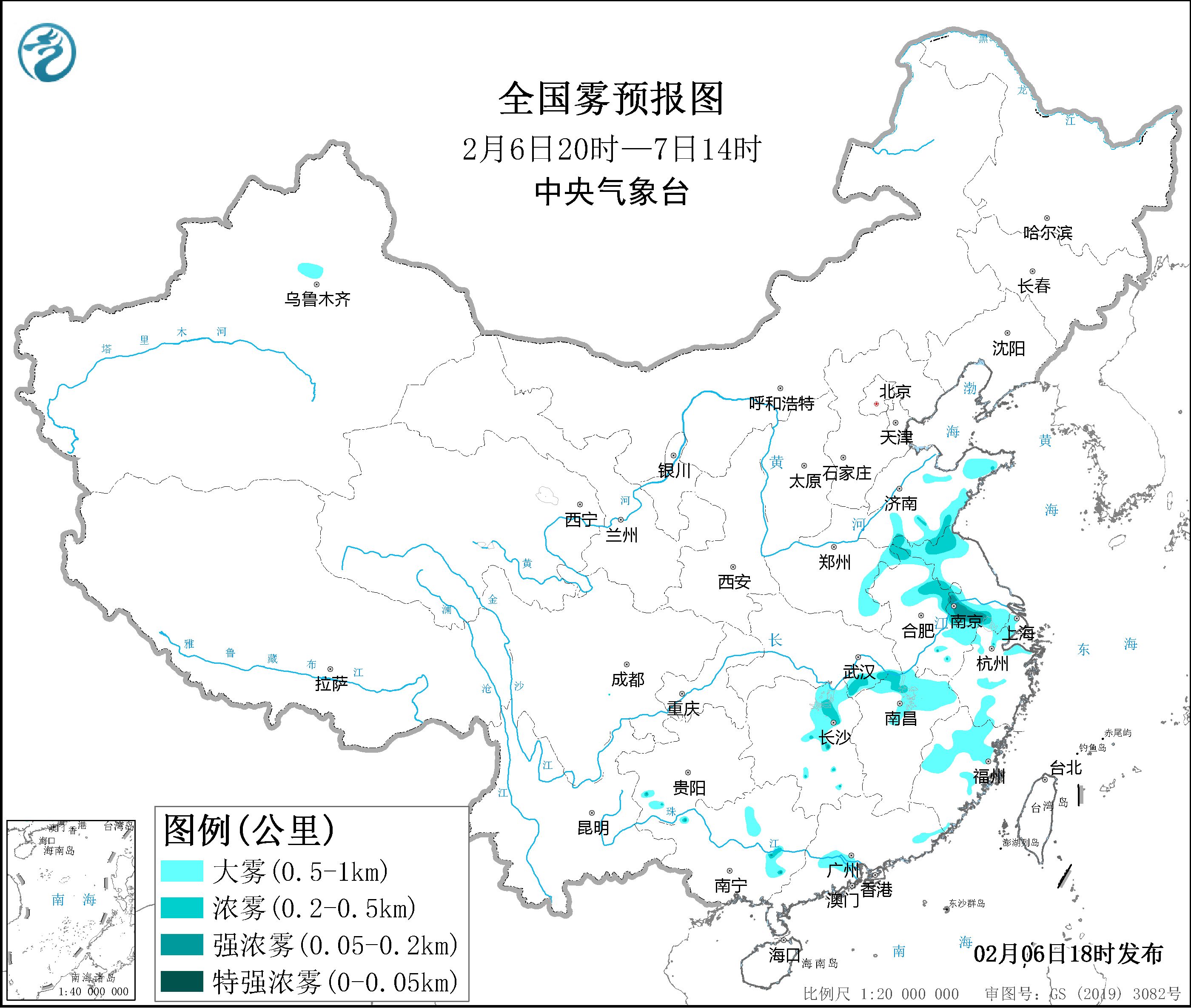 新京报讯 据中央气象台官网消息,预计,2月6日夜间至7日上午,山东东部和南部、安徽东部、江苏北部和南部、上海西部、浙江北部、湖北东南部、湖南东部、江西中北部、福建北部、广西东部、广东南部等地的部分地区有大雾,局地有能见度不足200米的强浓雾。