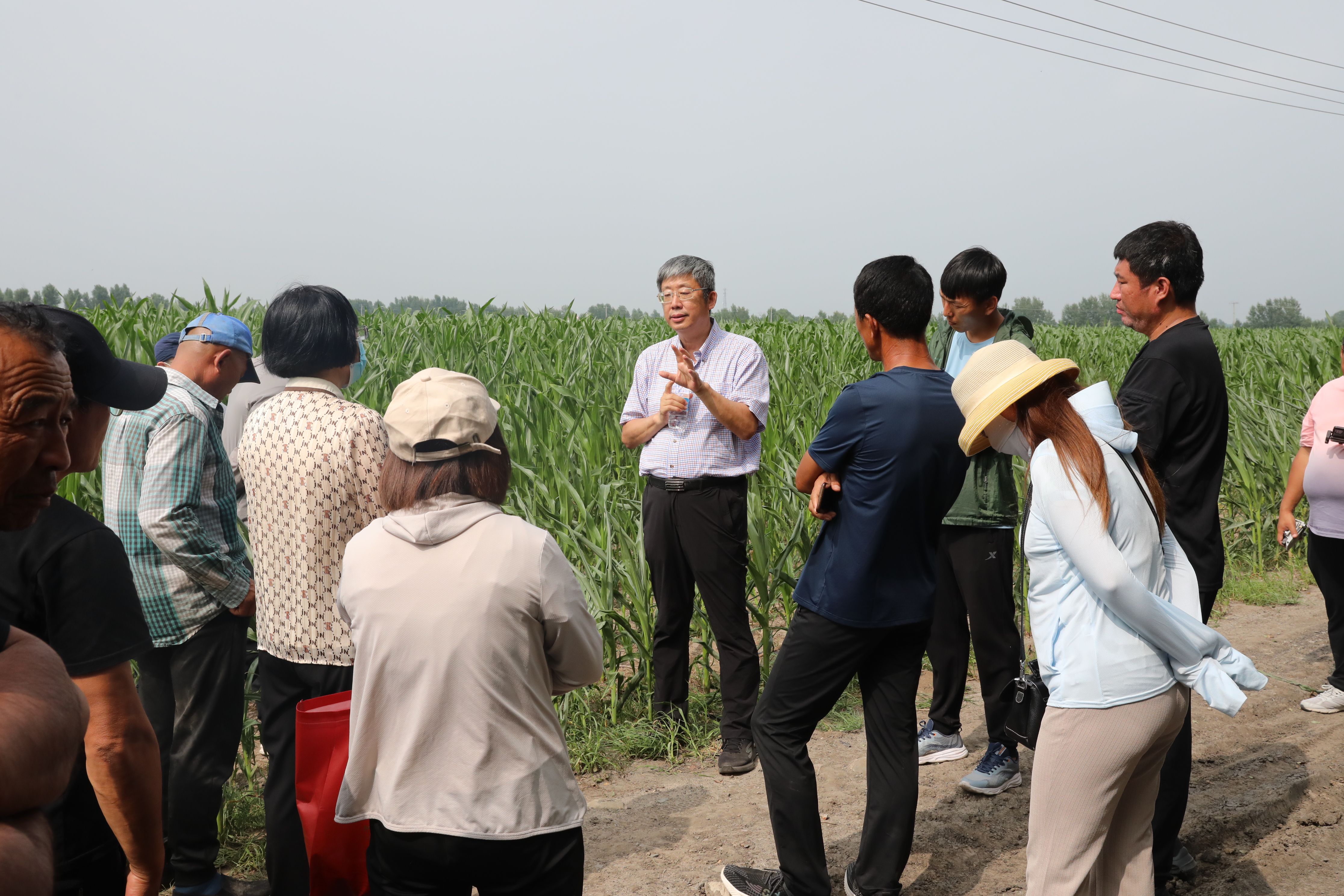 李少昆研究员在田间地头为种植大户讲解玉米密植滴灌高产技术。中国农科院供图
