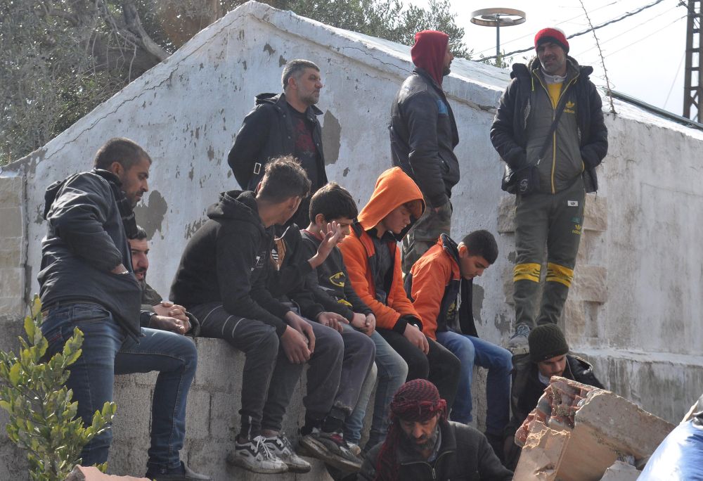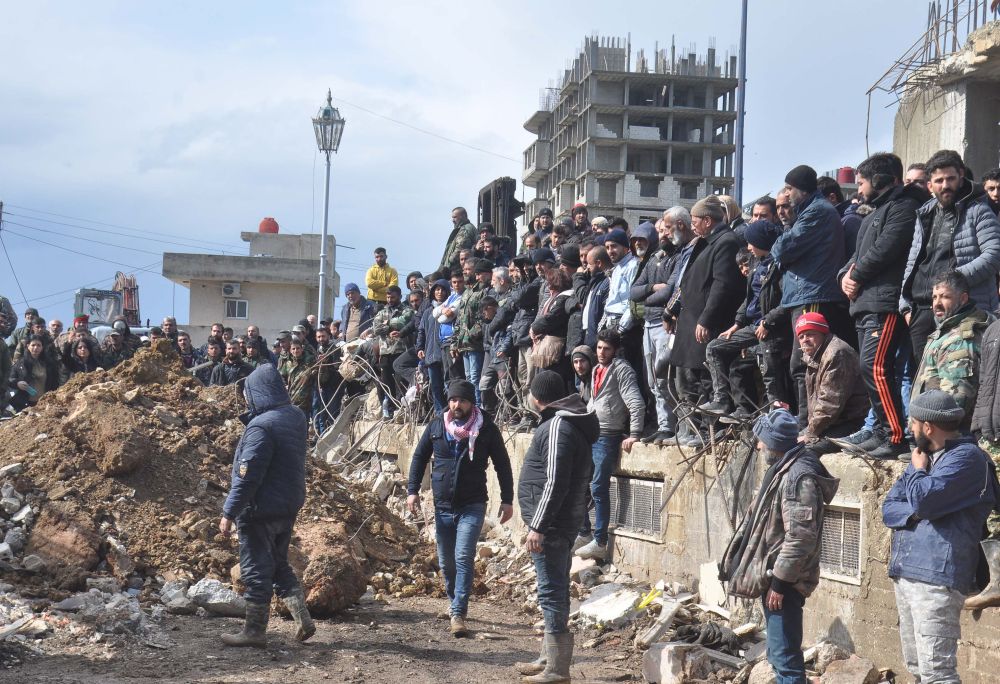 2月7日,人们聚集在叙利亚拉塔基亚省的一处地震废墟。新华社发