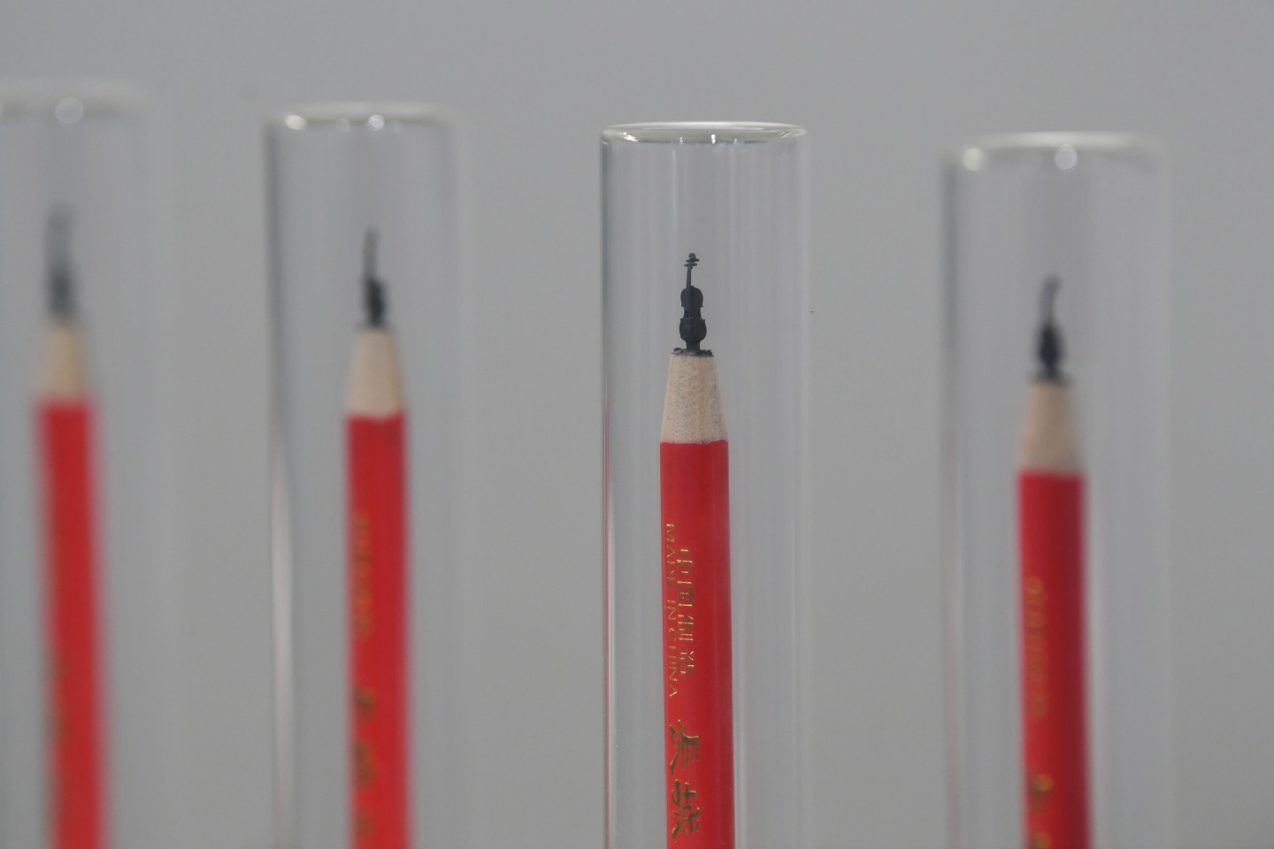 铅笔芯雕刻的吉他。新京报记者 王颖 摄