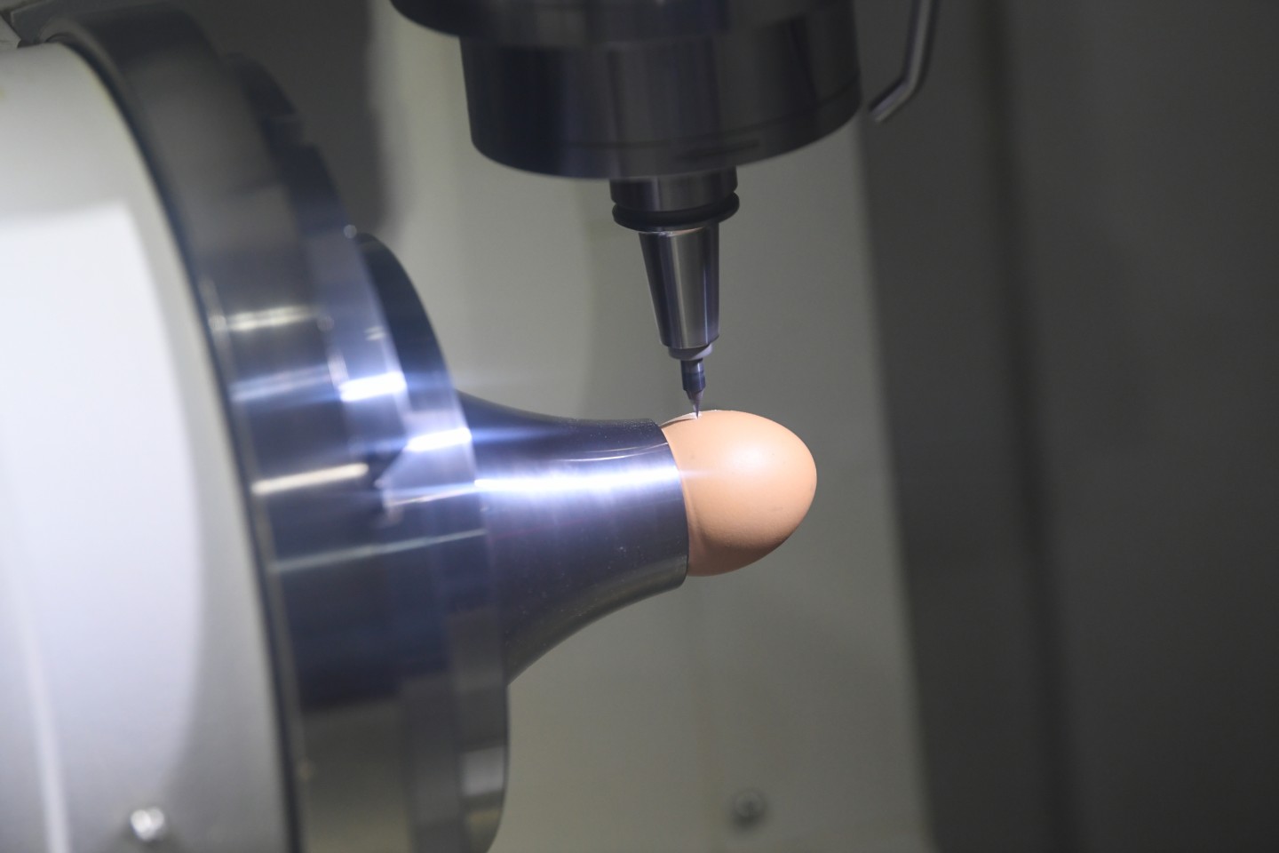 精雕车床雕刻鸡蛋。新京报记者 王颖 摄