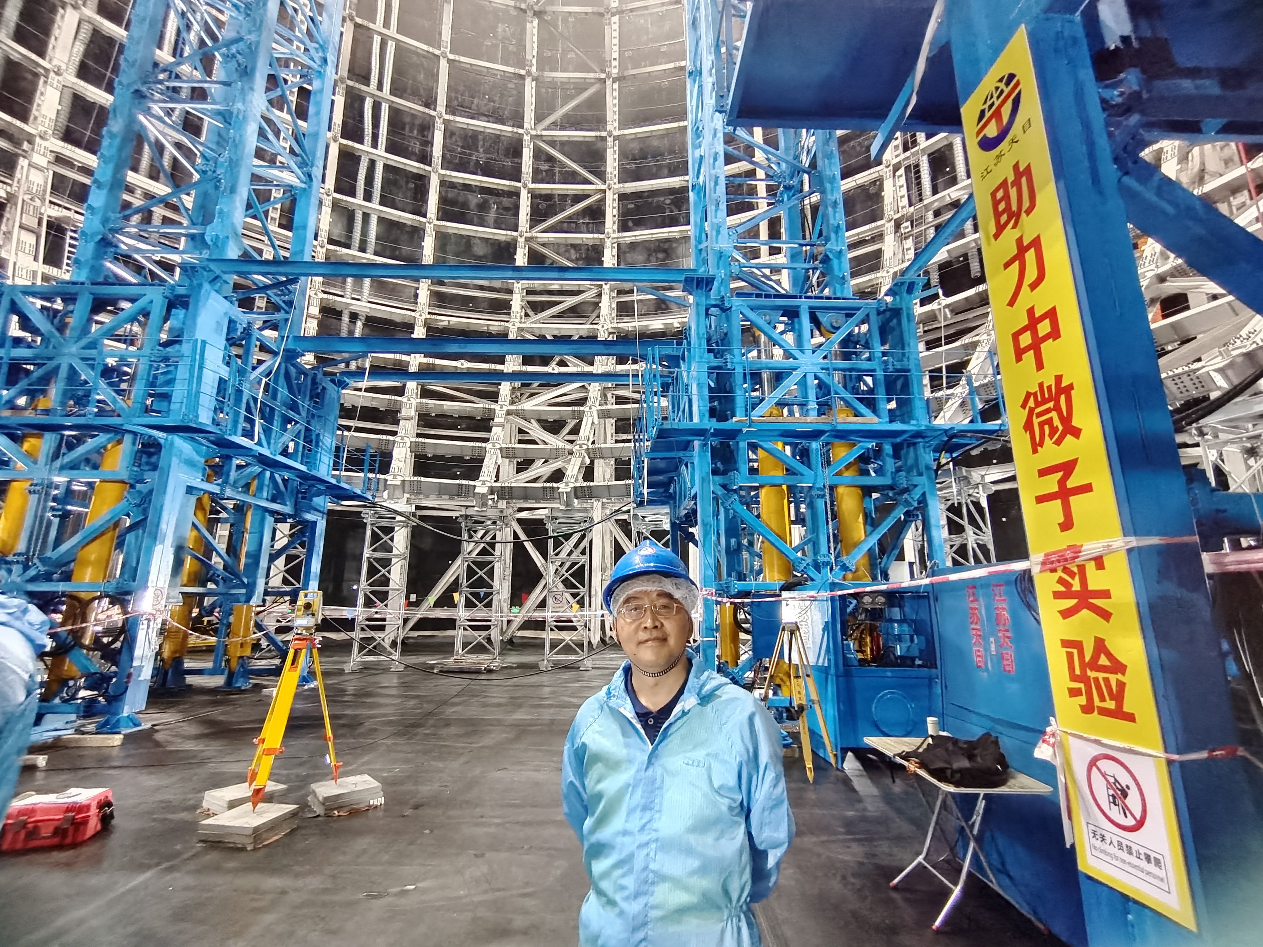 “走进中国科学院·记者行”活动来到江门中微子实验室,周德进在装置前。任晖 摄