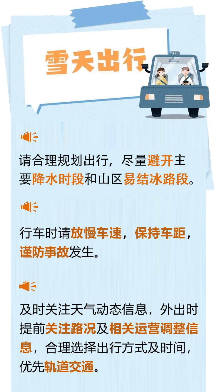 受雨雪和降温天气影响,能见度明显下降,路面湿滑易结冰,道路通行条件较差,容易发生追尾、剐蹭等交通事故。