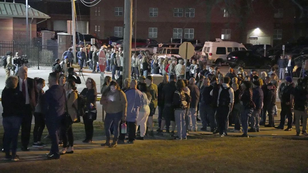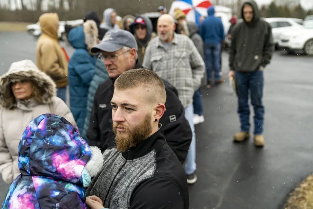 当地时间2023年2月15日,美国俄亥俄州东巴勒斯坦,当地和周边地区的居民排队参加市政厅会议。图/视觉中国