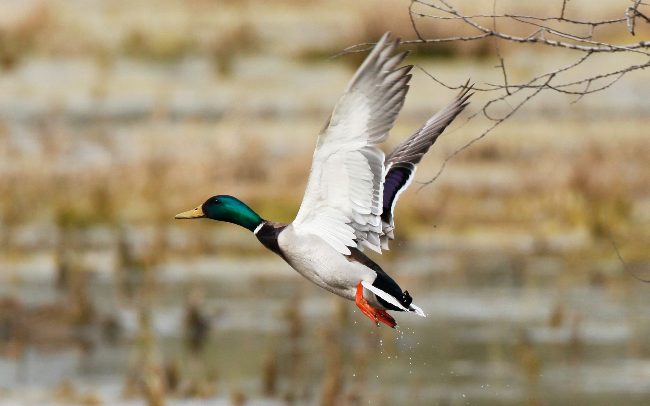 绿头鸭属游禽,大型鸭类,通常栖息于淡水湖畔, 或成群活动于江河、湖泊、水库等水域,不善潜水。
