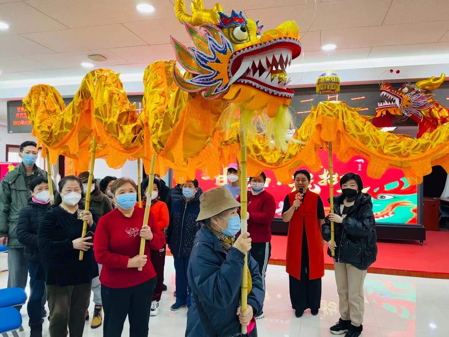 2月21日,农历二月初二,海淀区甘家口街道市民活动中心举办的理发教学活动上,参与的市民在进行舞龙表演。受访者供图