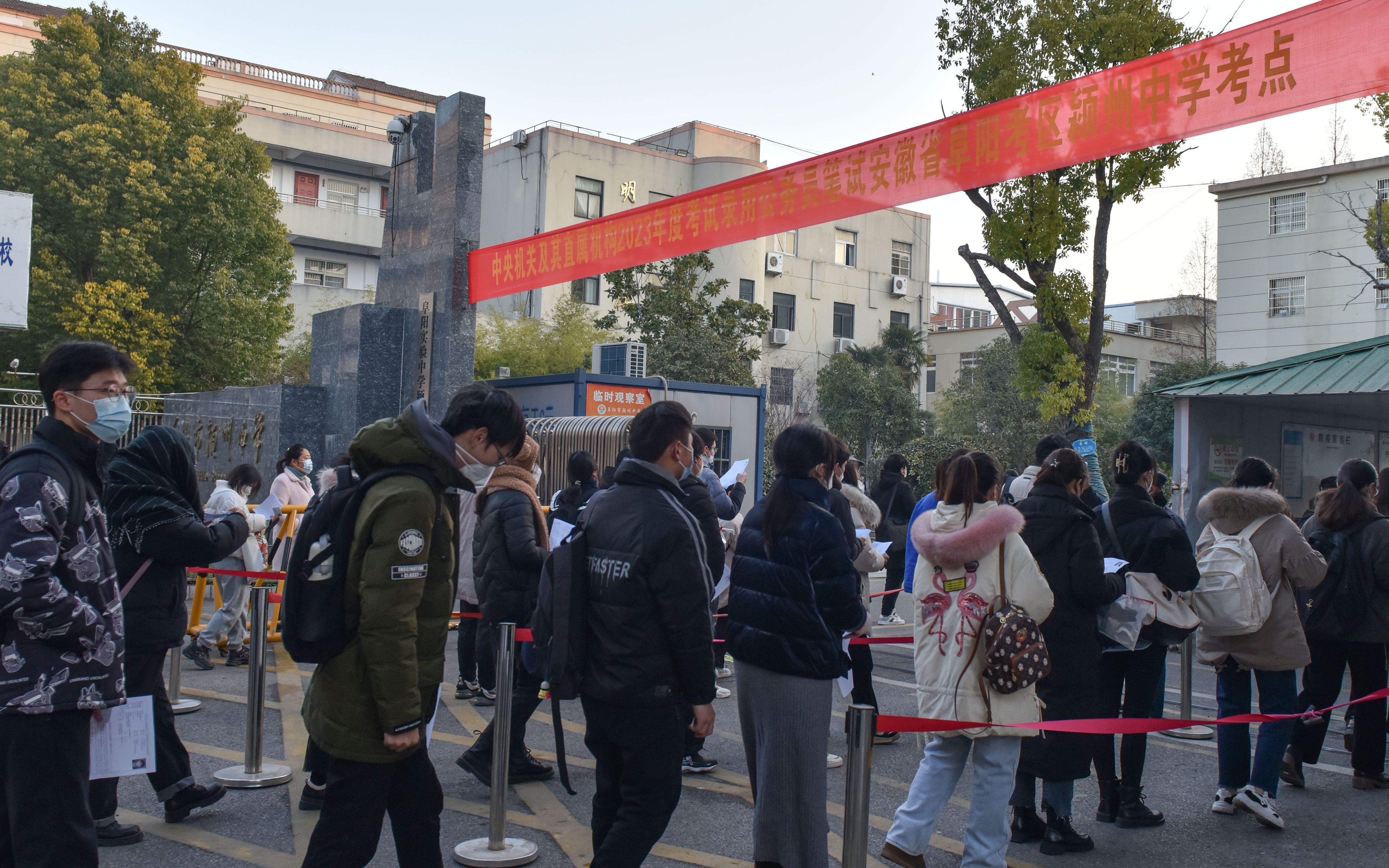 ▲2023年1月8日,在安徽省阜阳考区颍州中学“国考”考点,考生进场参加考试。图/IC photo