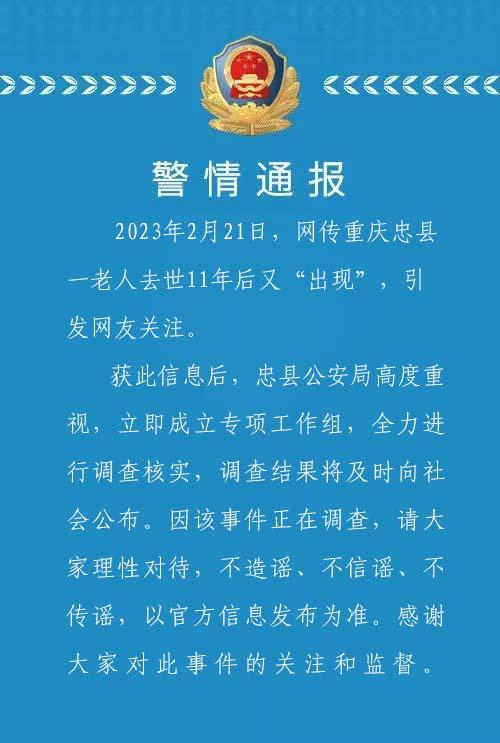 新京报讯 据忠县发布官微消息,2023年2月21日,网传重庆忠县一老人去世11年后又“出现”,引发网友关注。