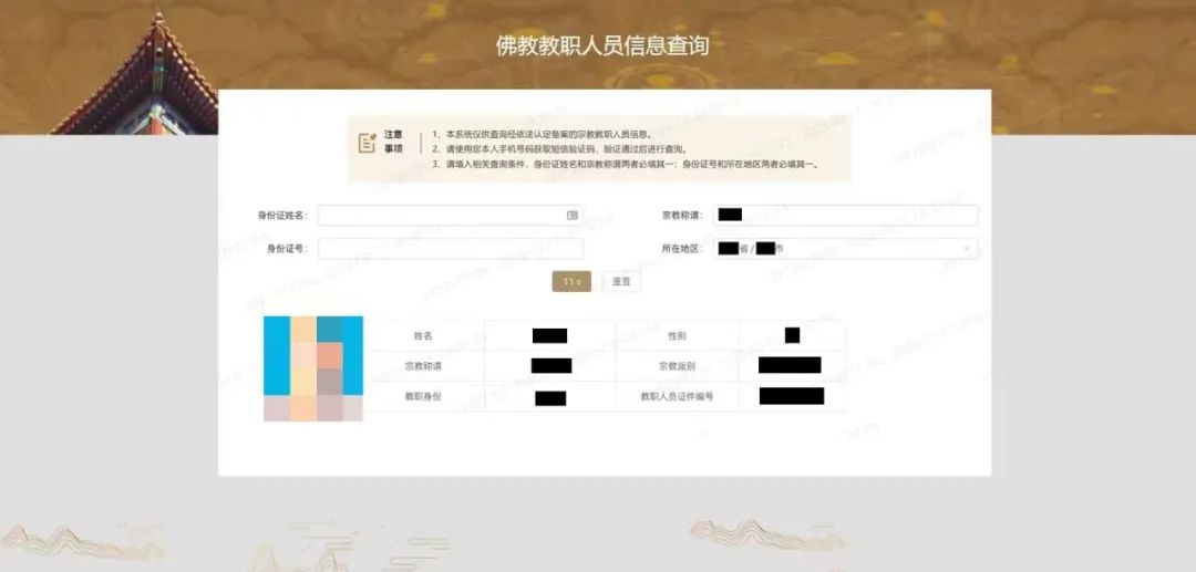 如果被查询人确为经依法认定备案的宗教教职人员,系统将显示该宗教教职人员相关信息。