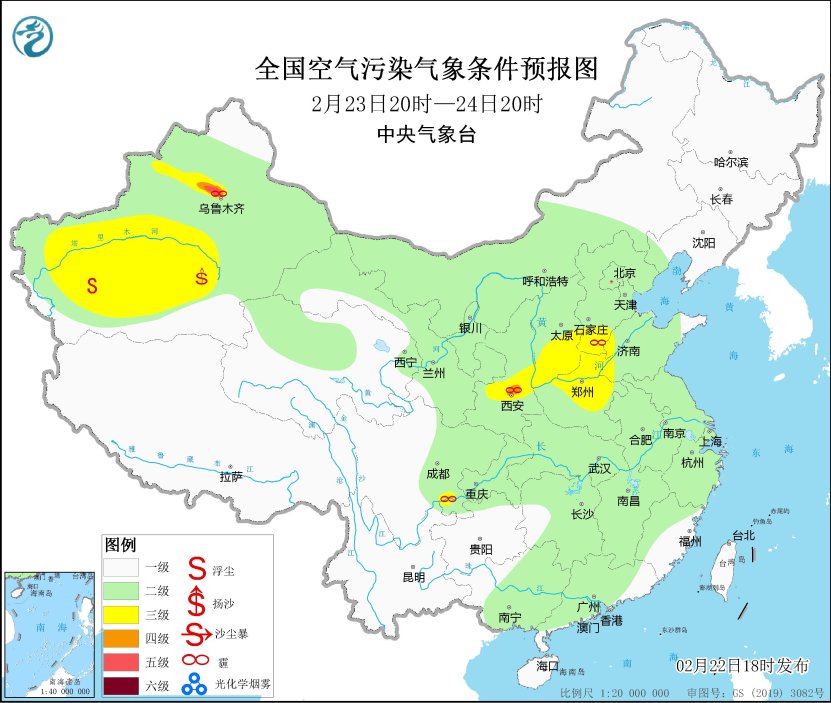 22日夜间至24日,区域大部大气扩散条件一般,陕西关中、山西中南部等地的部分地区有轻度霾,局地中度霾。
