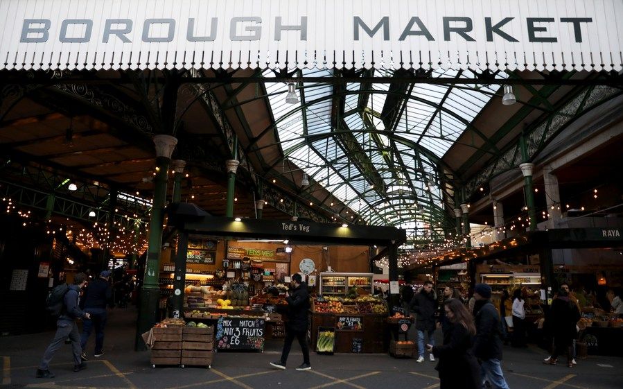 2023年2月9日,人们在英国伦敦博罗市场内采购。新华社记者李颖摄
