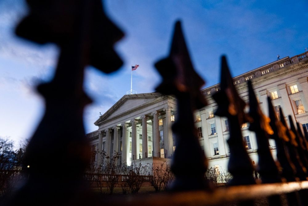 这是1月20日在美国首都华盛顿拍摄的财政部大楼。新华社记者刘杰摄