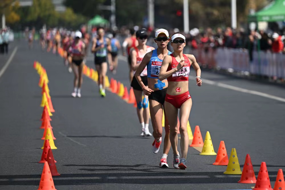 女子组比赛在当日上午10点开赛,比赛过程中温度相对较高,不过开赛后领走集团把速度带得很快。5公里之后,领走集团就只剩下杨家玉、四届世锦赛冠军刘虹、2019年世锦赛季军杨柳静以及2022年世界竞走团体锦标赛冠军马振霞四人。又过了两公里,杨家玉和杨柳静又进一步加速,甩开了另外两人。