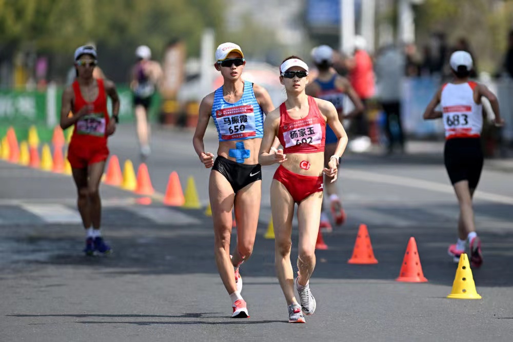不过随着比赛的进行,温度不断升高,领走的杨家玉速度有所放缓。10公里后马振霞逐渐追赶上来,她和杨家玉、杨柳静形成三人领走集团。15公里后,杨柳静开始掉速,很快她被身后的刘虹超越。杨家玉和马振霞并驾齐驱一直走到最后一公里。