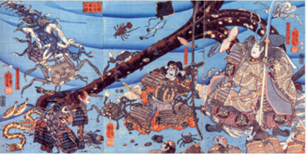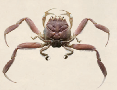 2.现在已经发现了关公蟹科的化石,如四齿关公蟹,其人面纹与今天的几无二致,说明早在源平合战(1180—1185年)之前,甚至很可能在日本有人之前,关公蟹就已经有人面纹了。