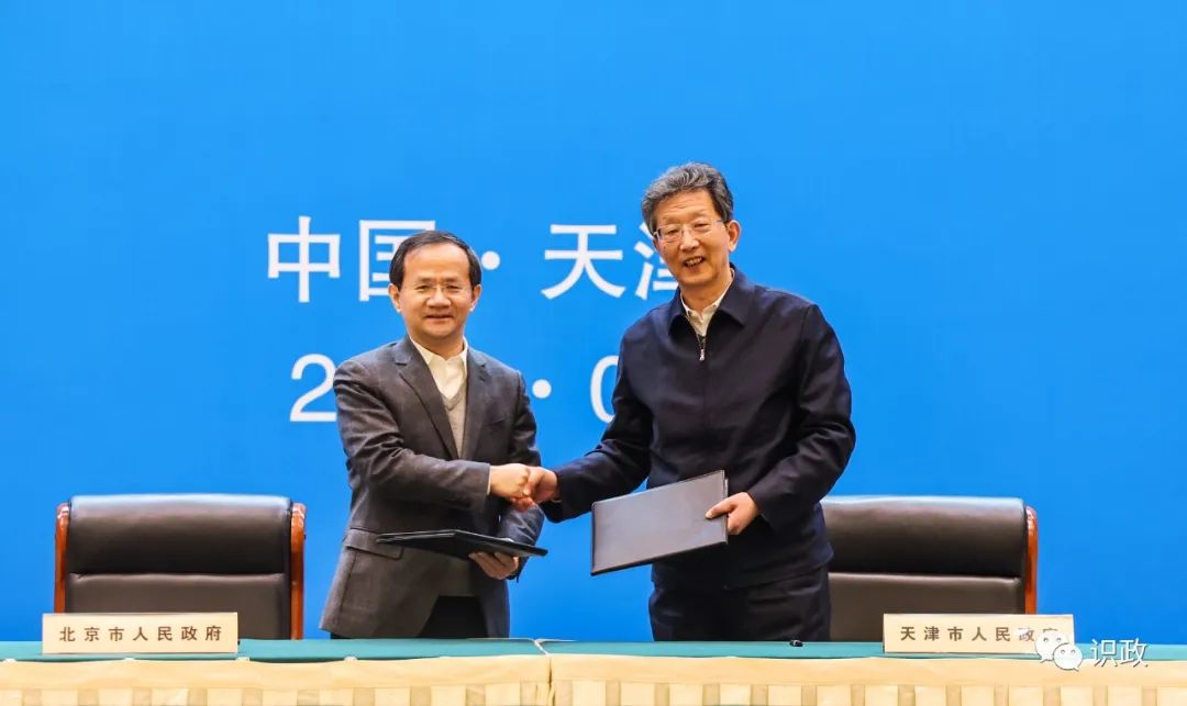 座谈会后,殷勇、张工代表双方共同签署《北京市人民政府 天津市人民政府进一步加强战略合作框架协议》。