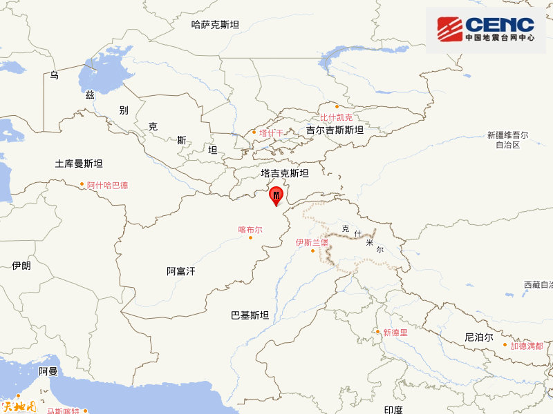 阿富汗发生6.9级地震 震源深度230千米