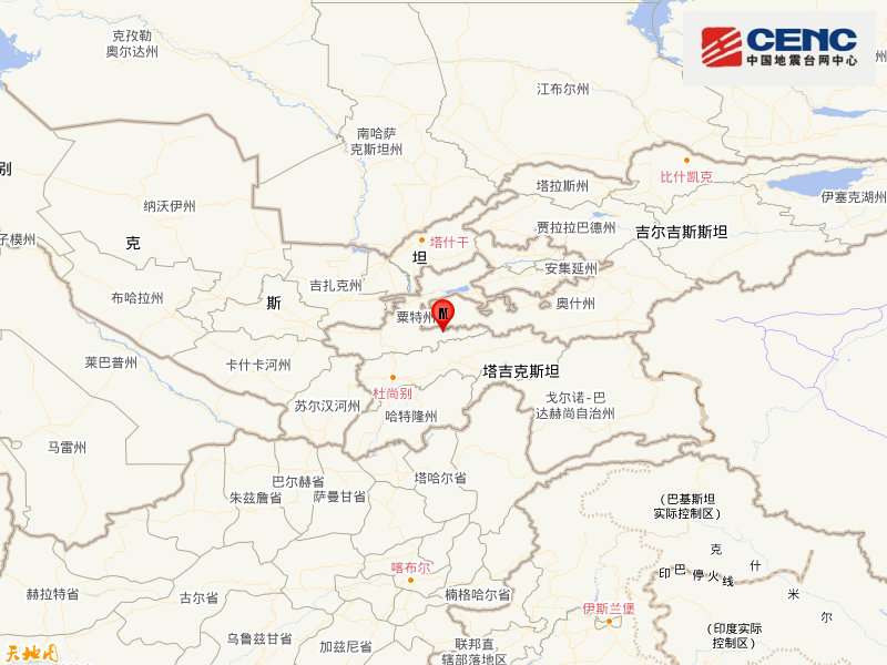塔吉克斯坦发生5.9级地震 震源深度10千米