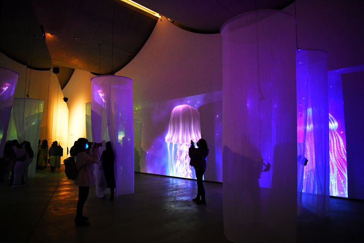 观众参观《水母》展区。