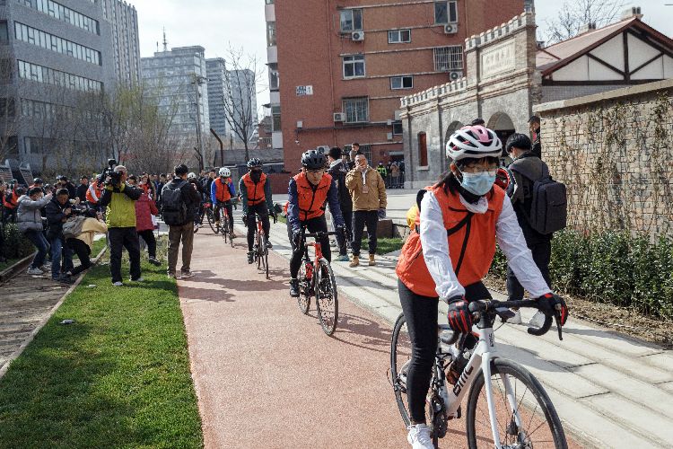3月25日,一群大学生组成的骑行队伍从清华园车站旧址出发,前往颐和园益寿堂和香山革命纪念地参观瞻仰,重走“赶考路”。