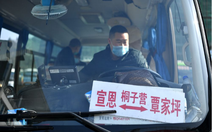 ▲资料图:2020年3月18日,在湖北省宣恩县汽车客运站,工作人员在对车辆进行消杀处理。图/新华社