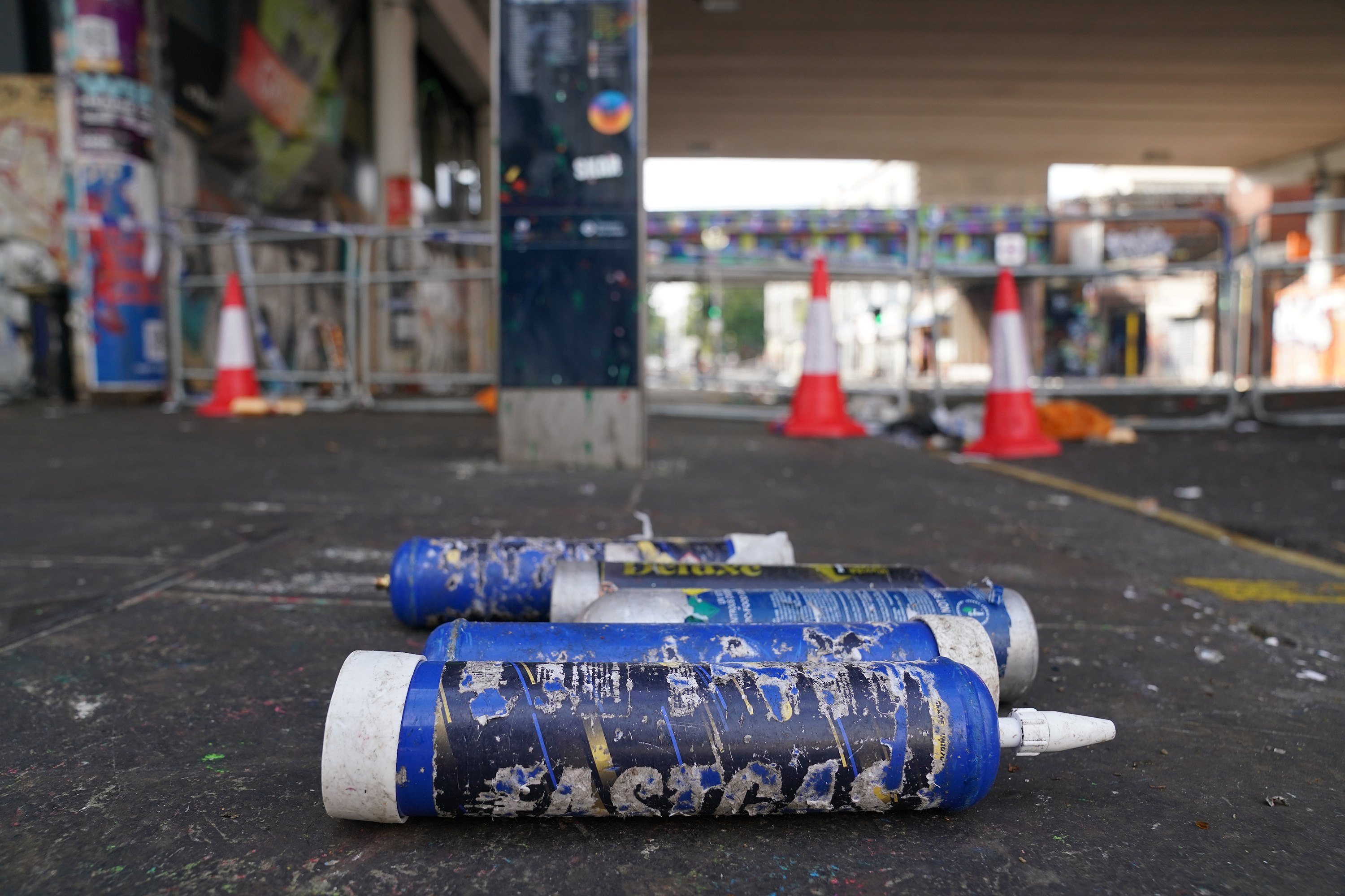 当地时间2022年8月30日,英国伦敦,笑气罐散落在街道上。作为打击反社会行为的一部分,英国禁止向公众出售笑气。图/视觉中国