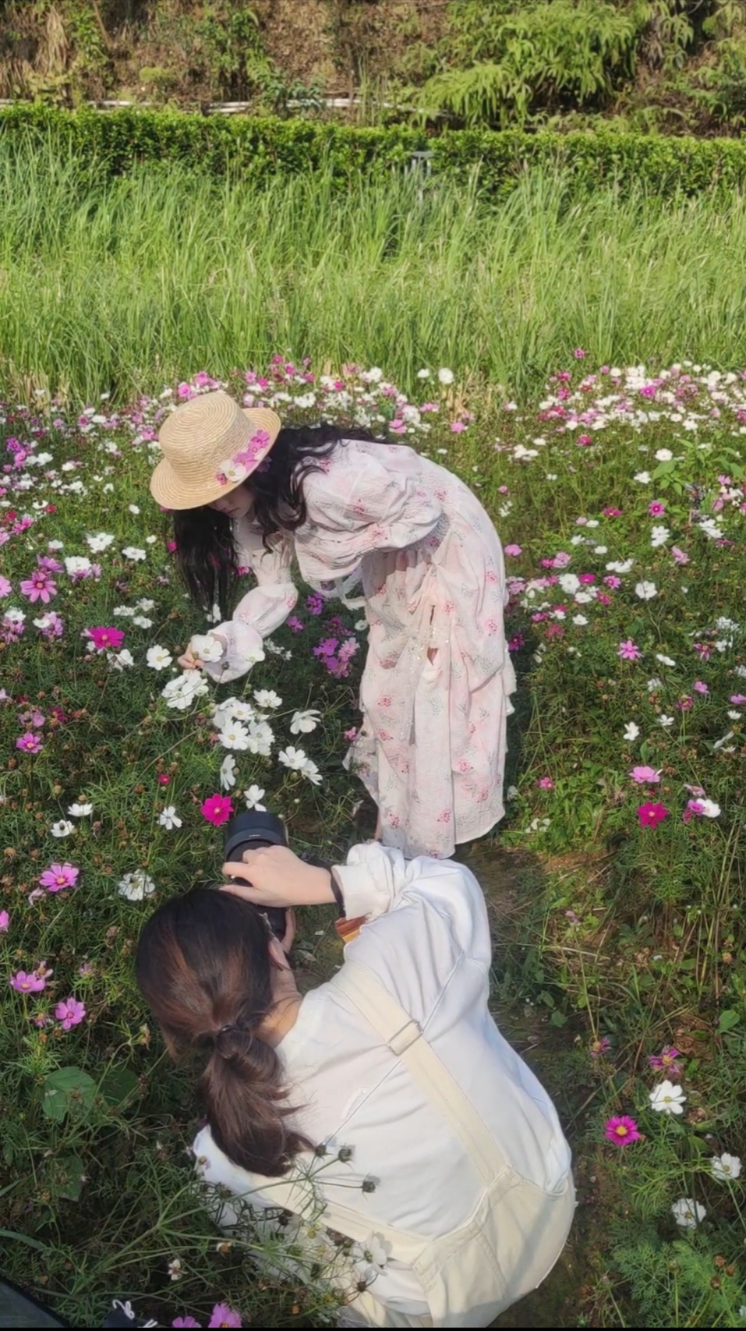 为了体现人物与花海的互动,熊小蕾会提前到花卉市场买一束与花海对应的花,拍摄现场也只在允许活动的地方拍摄。她说:“景观是需要共同维护的,在花海拍照更要注意文明打卡。比如有些游客会为了效果,踩在鲜花上面,或者直接掰折鲜花,对花造成伤害,我看到都会去制止。”