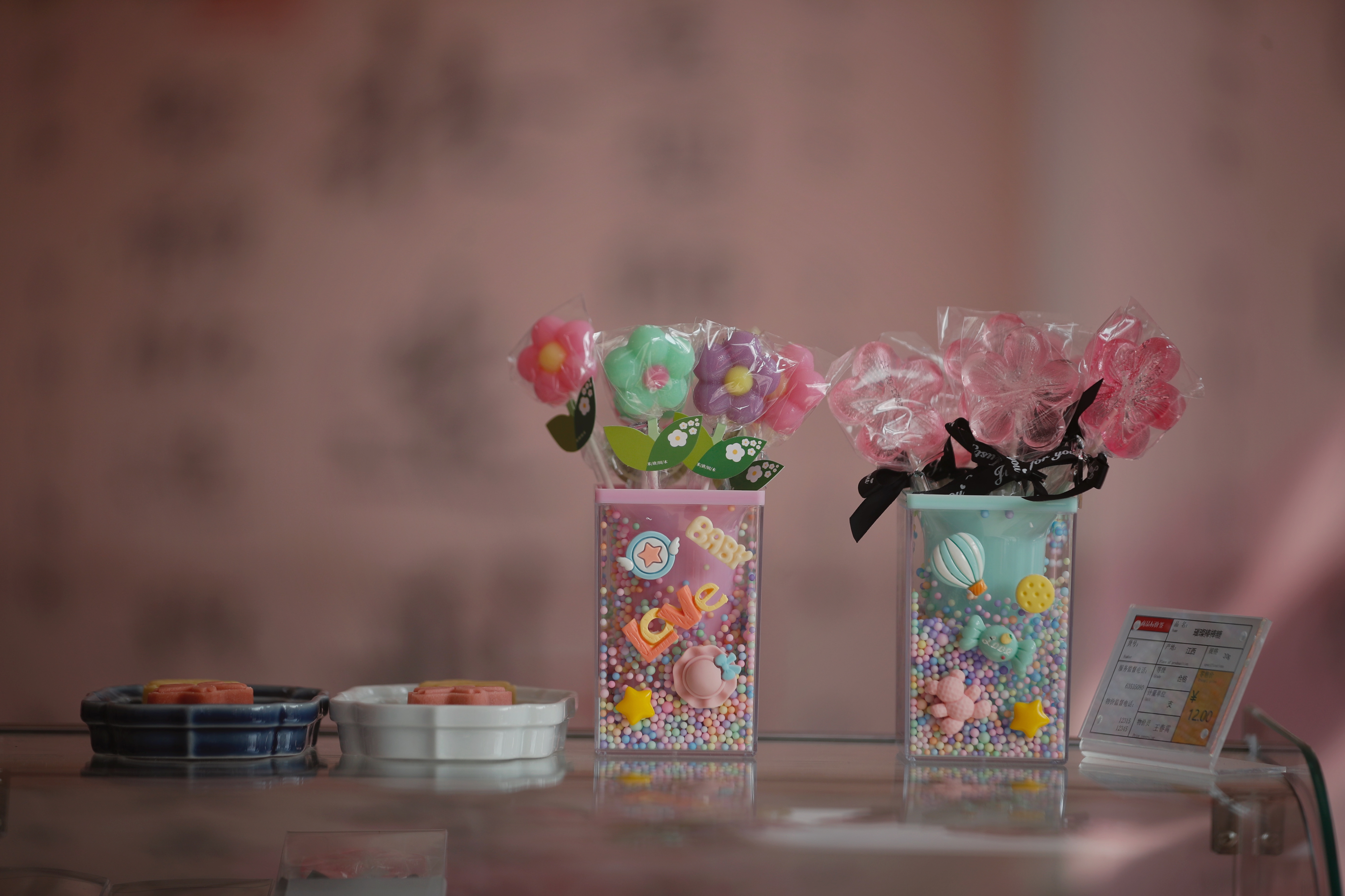 3月30日,陶然亭公园第八届海棠春花文化节上,公园特意推出了海棠果口味棒棒糖。 新京报记者 薛珺 摄