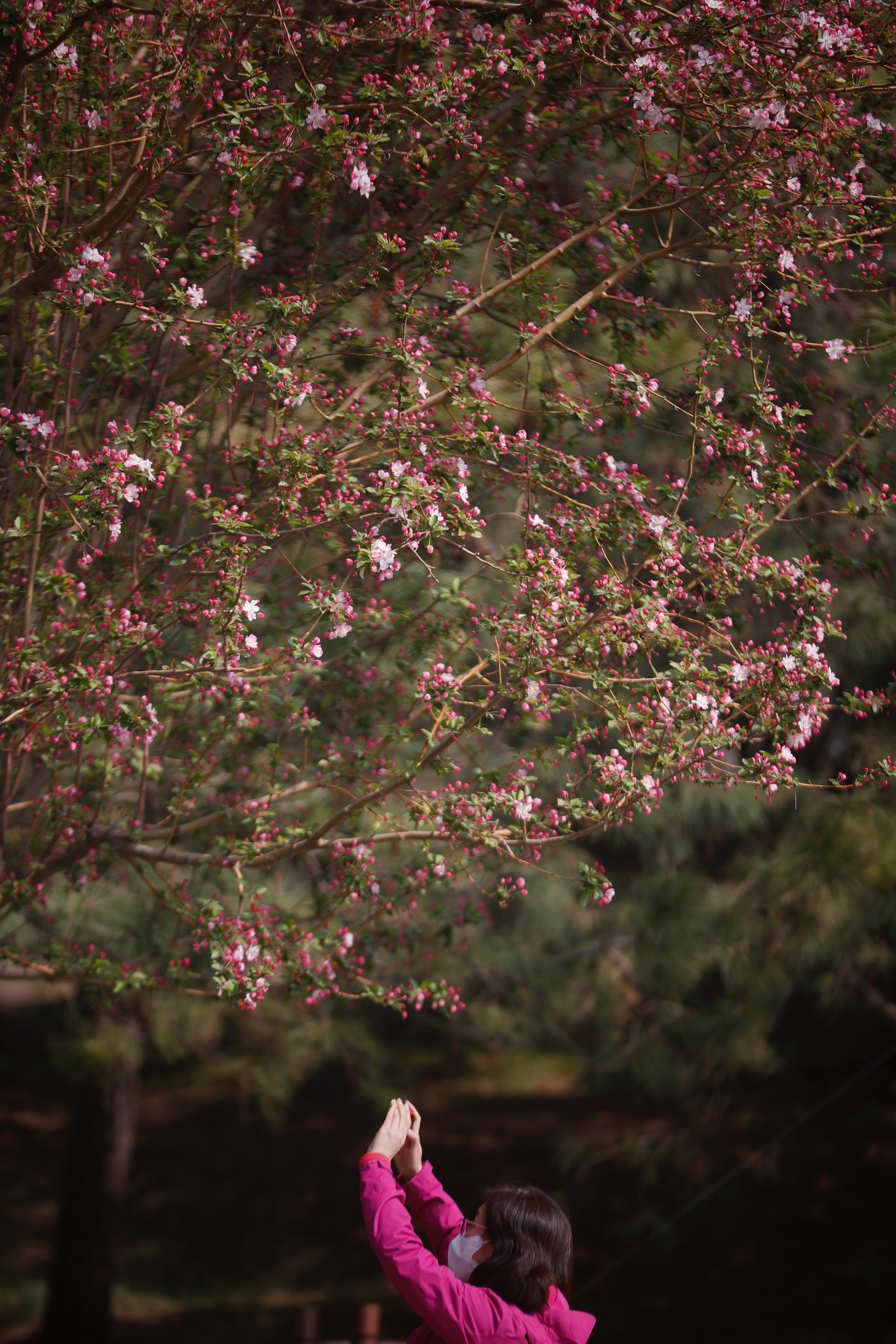 3月30日,陶然亭公园第八届海棠春花文化节上,游客在拍摄西府海棠。 新京报记者 薛珺 摄